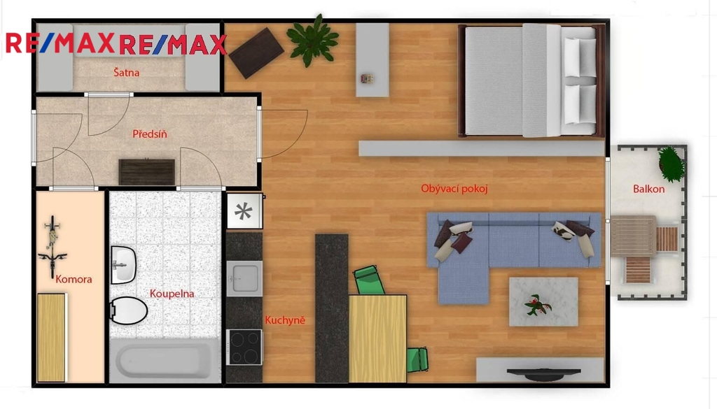 - Dispozice bytu: 1+kk