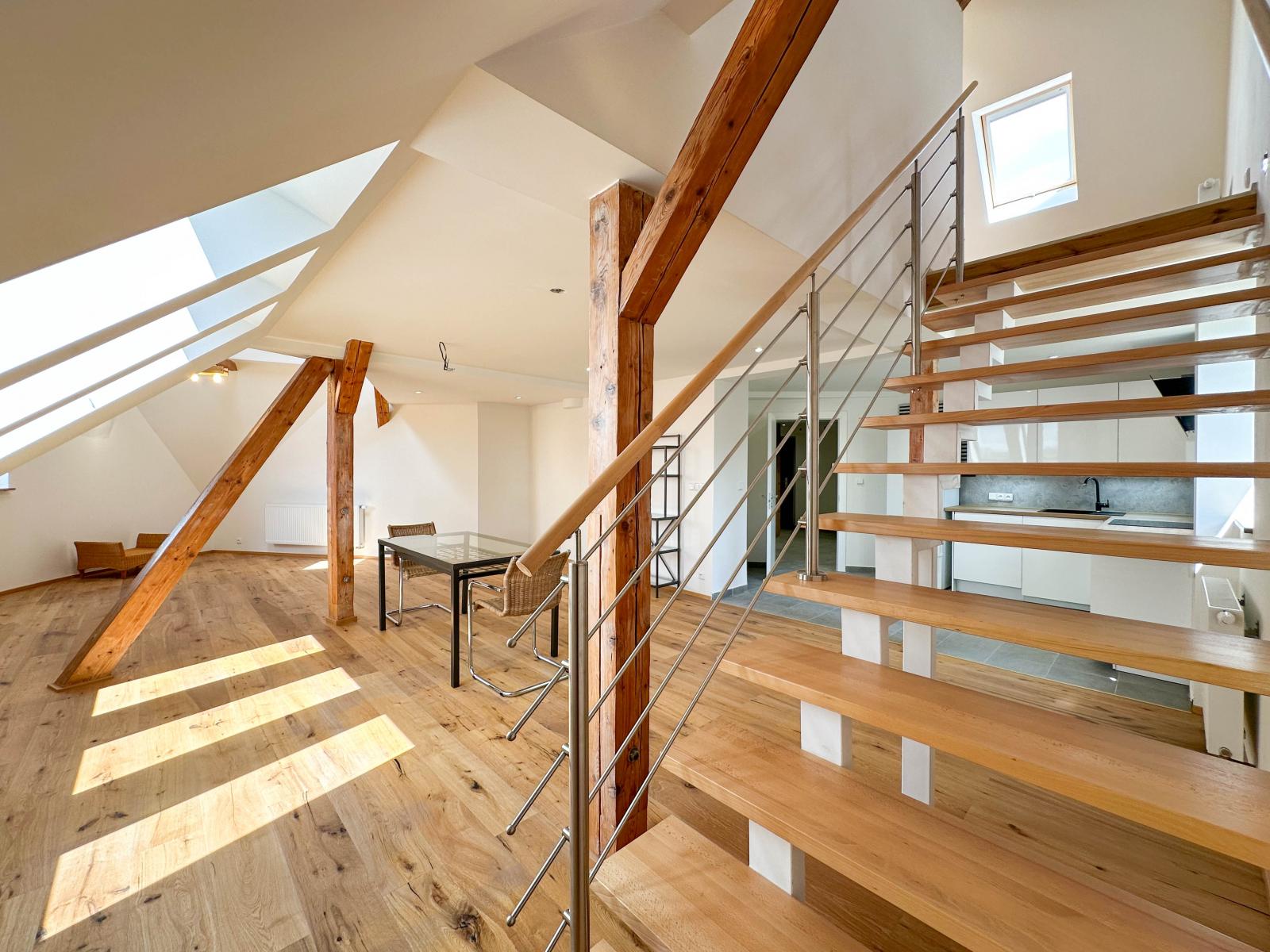 Atypický byt 3+kk, 103m2, 4. patro bez výtahu, komora, 2 koupelny. Pod Kaštany, Praha 6 - Dejvice.