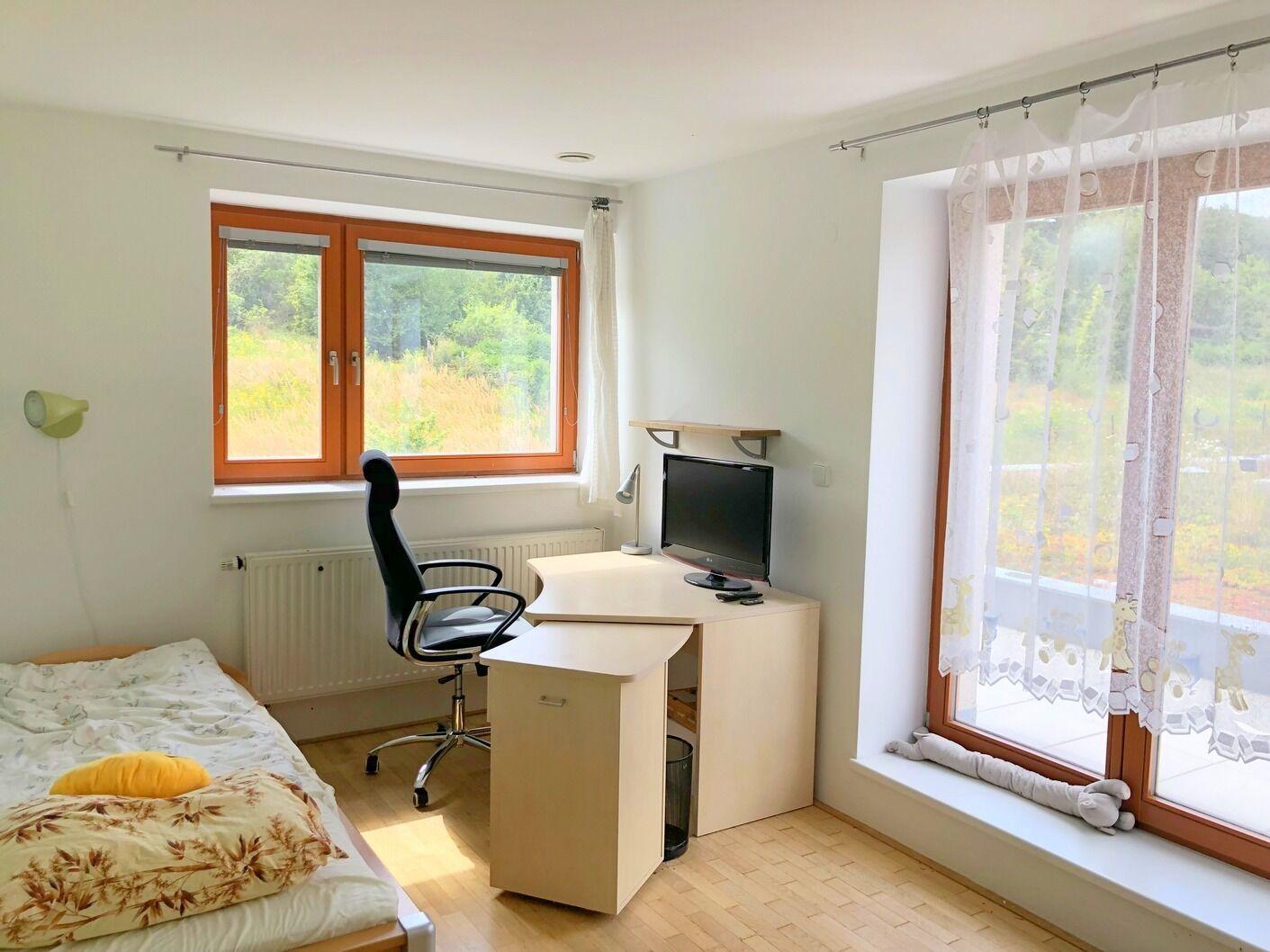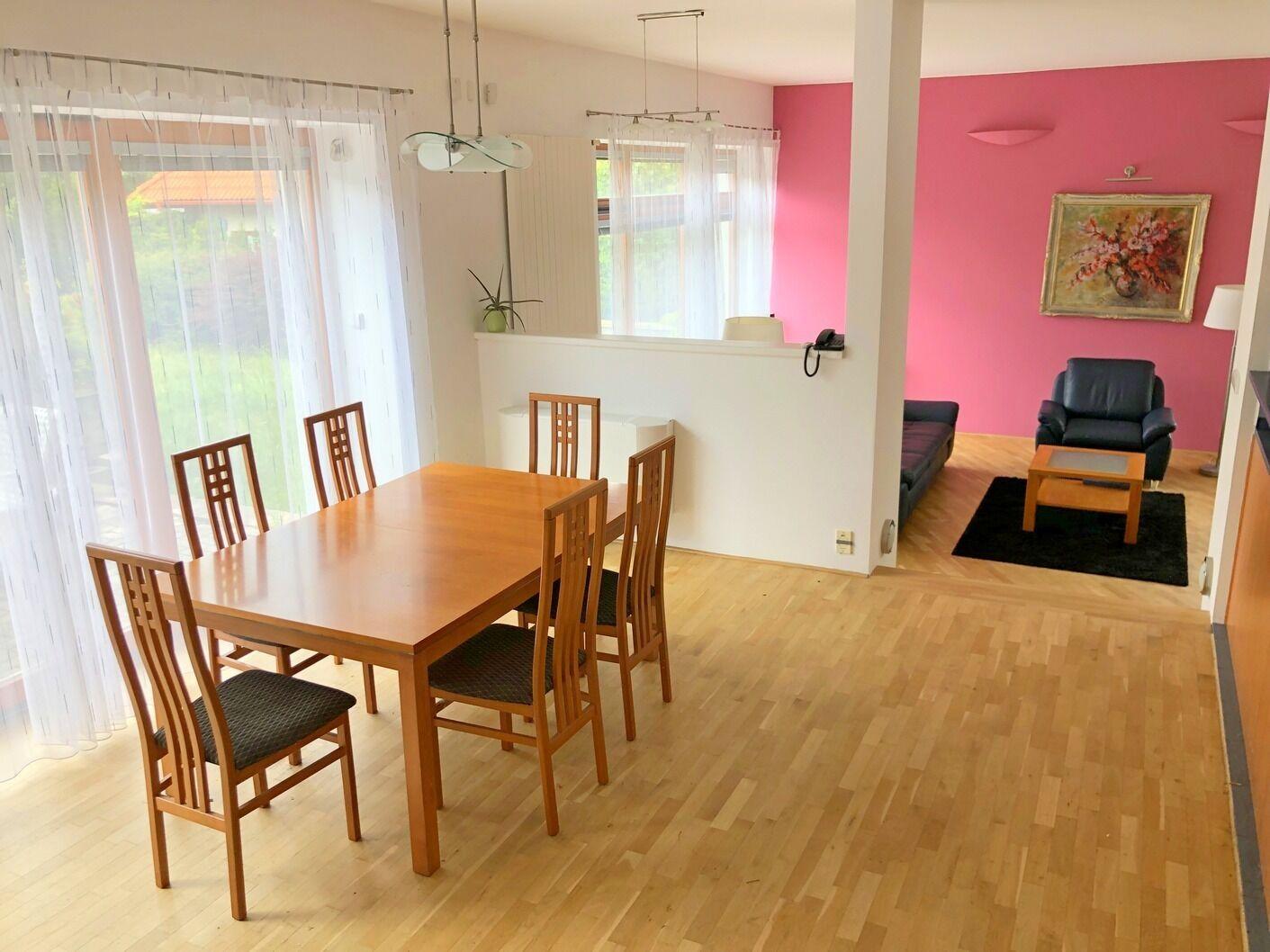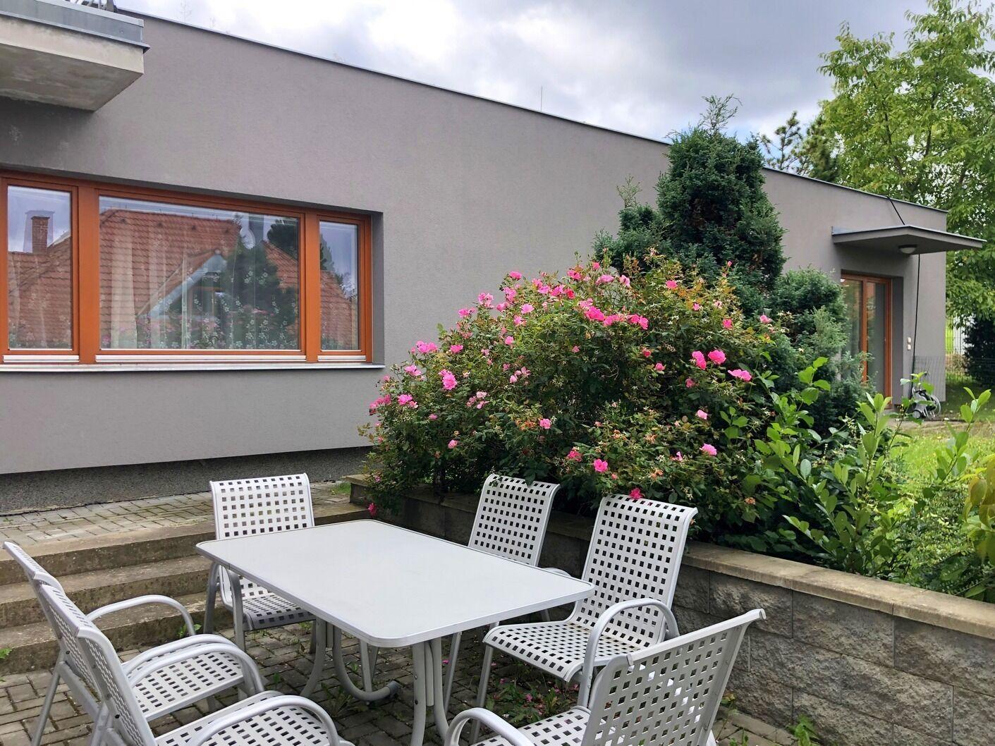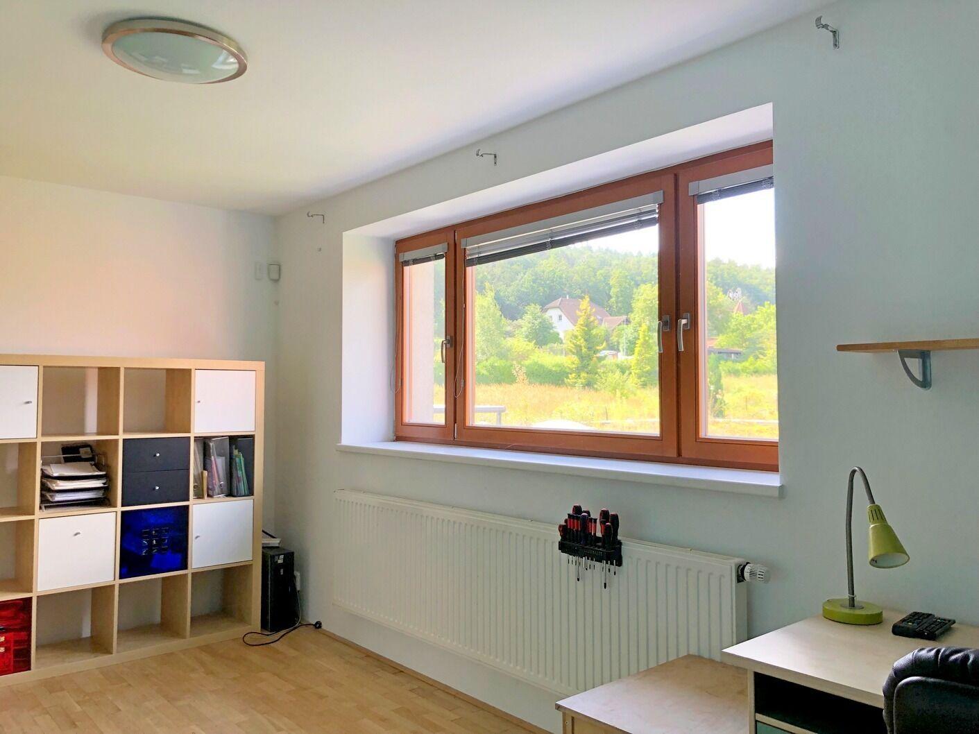 Dvoupodlažní RD 260 m2 se zahradou v atraktivní lokalitě na okraji Zbraslavi s krásným výhledem. V přízemí se nachází vstupní hala, obývací pokoj se vstupem na terasu a zahradu, kuchyně s jídelnou a koupelna s WC. V 1. patře se nacházejí 3 ložnice a koupelna s WC. Dále je k dispozici oddělená budova se dvěma pokoji/pracovnami s další koupelnou a WC. Součástí domu je krásná zahrada a dvě zastřešená stání pro auta. Dům je možné pronajmout i nezařízený či jako sídlo firmy. Volné od 1.3.2026.