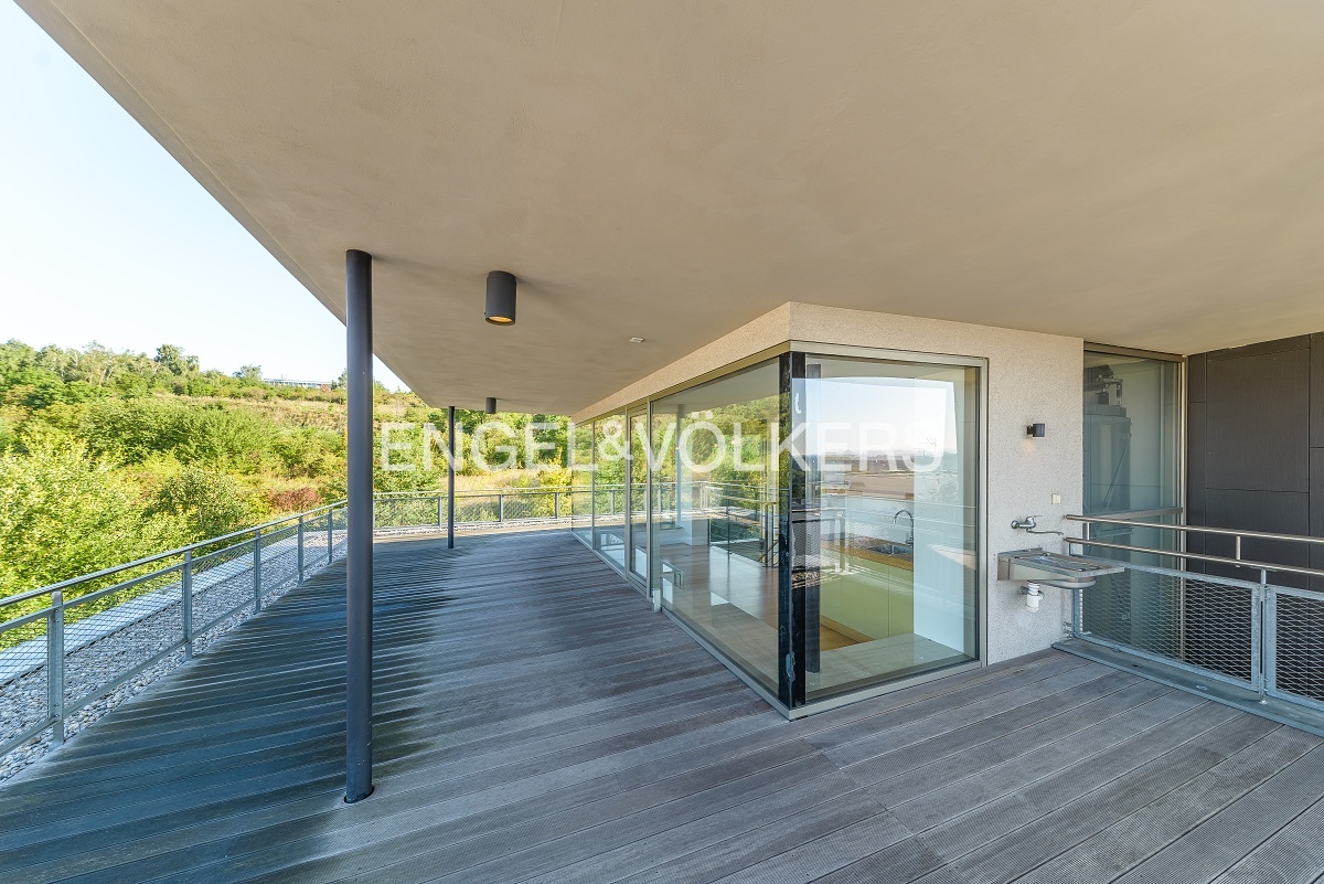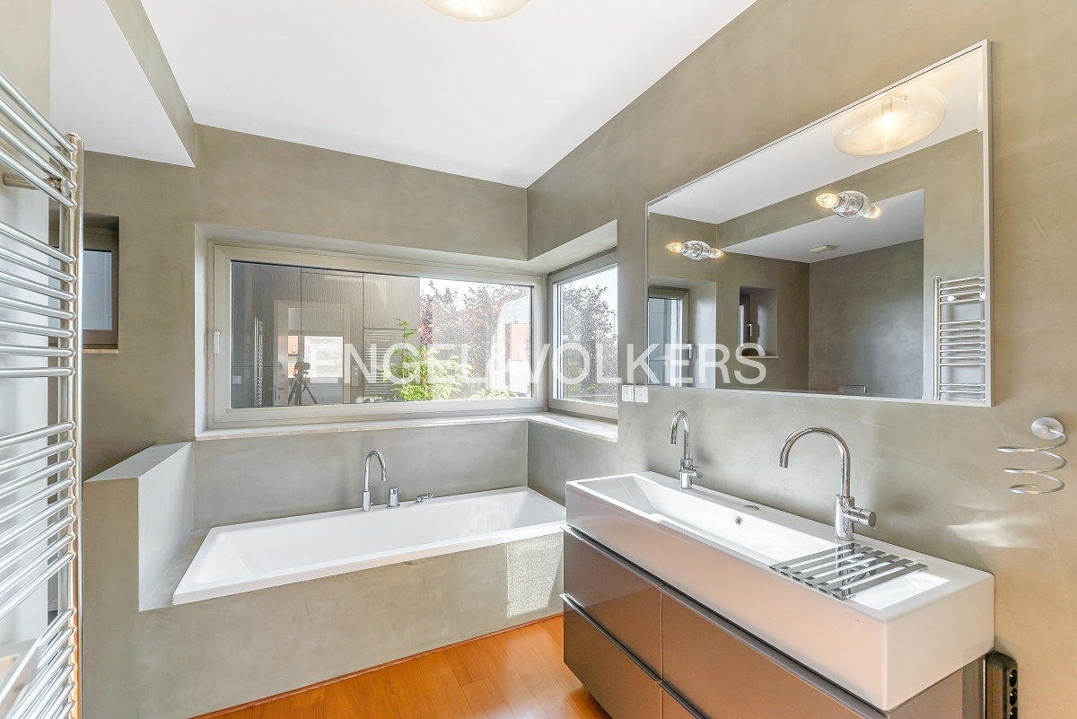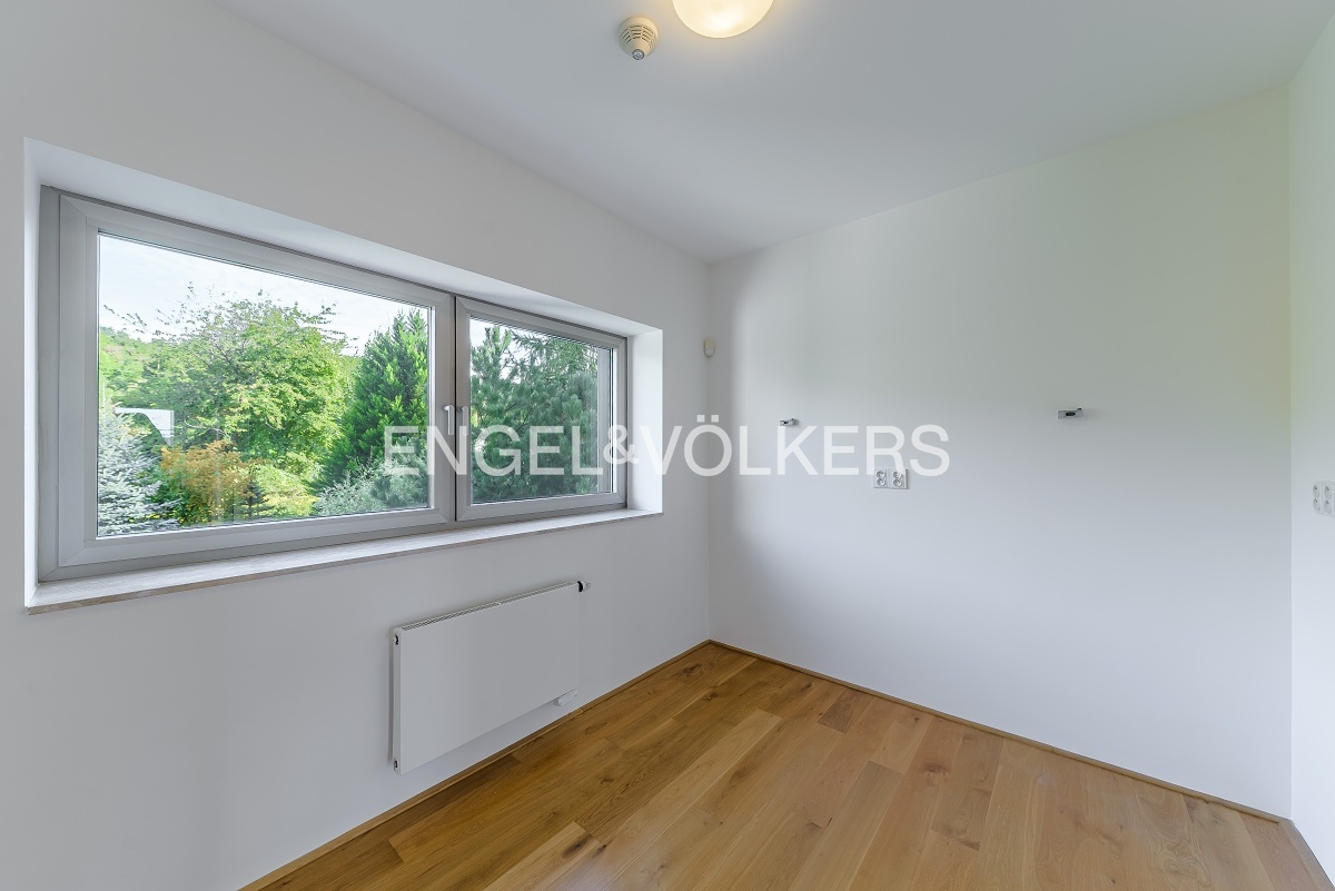 Poslední patro domu je možné využít jako samostatnou jednotku díky menší kuchyni. Též je zde vstup na prostornou terasu s výhledy do okolní zeleně a na zahradu.