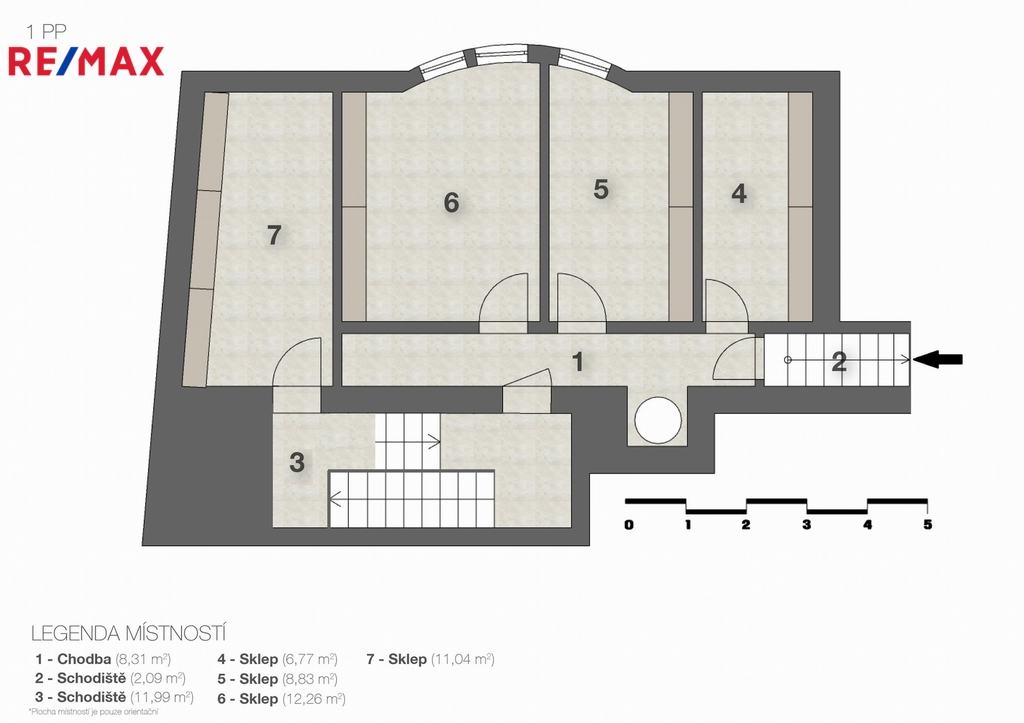 1. podzemní podlaží (1. PP) – 47,1 m²