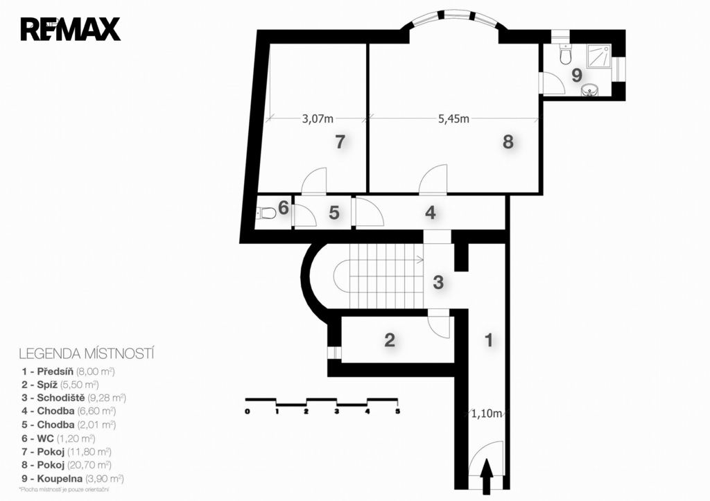 • Podlahy: na chodbách a v kuchyni linoleum, v koupelně a na toaletě dlažba