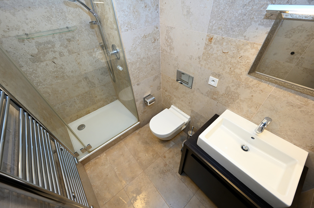 V horním patře bytu se nachází další dvě ložnice a koupelna se sprchovým koutem. Celkově tak byt disponuje čtyřmi ložnicemi, což z něj činí ideální volbu pro větší rodinu nebo pro ty, kteří pracují z domova a chtějí některý pokoj využít jako kancelář.