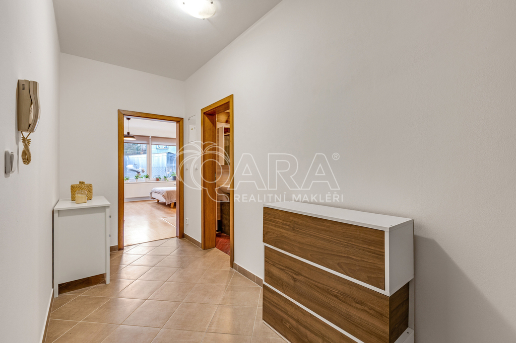 Jednotka, která prošla tento měsíc revitalizací, se nachází ve zvýšeném přízemí. Stejně jako prostorná komora, která je praktickým bonusem pro budoucí majitele, kteří díky ní budou mít dostatek úložného prostoru.