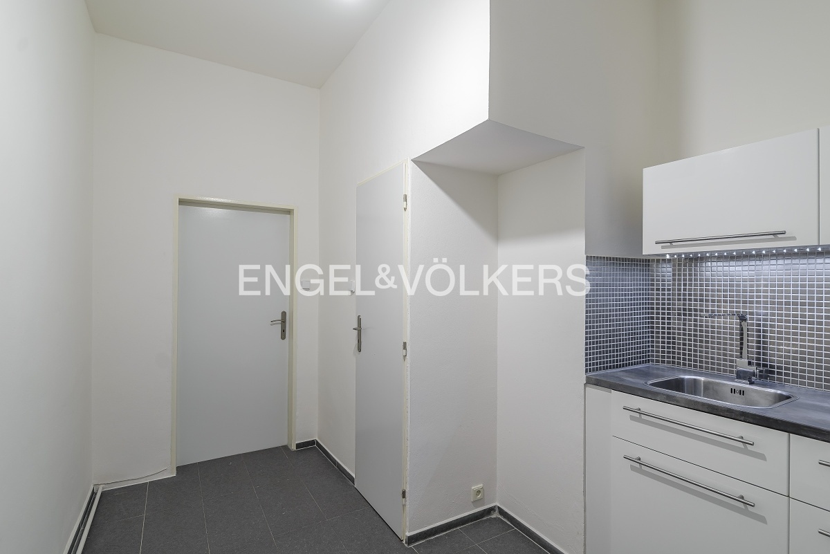 Světlý byt po kompletní rekonstrukci ve 3. patře činžovního domu s výtahem. Hlavní místnost je velmi světlá a je orientovaná do jednosměrné ulice, kuchyně je oddělena od hlavní obytné místnosti.