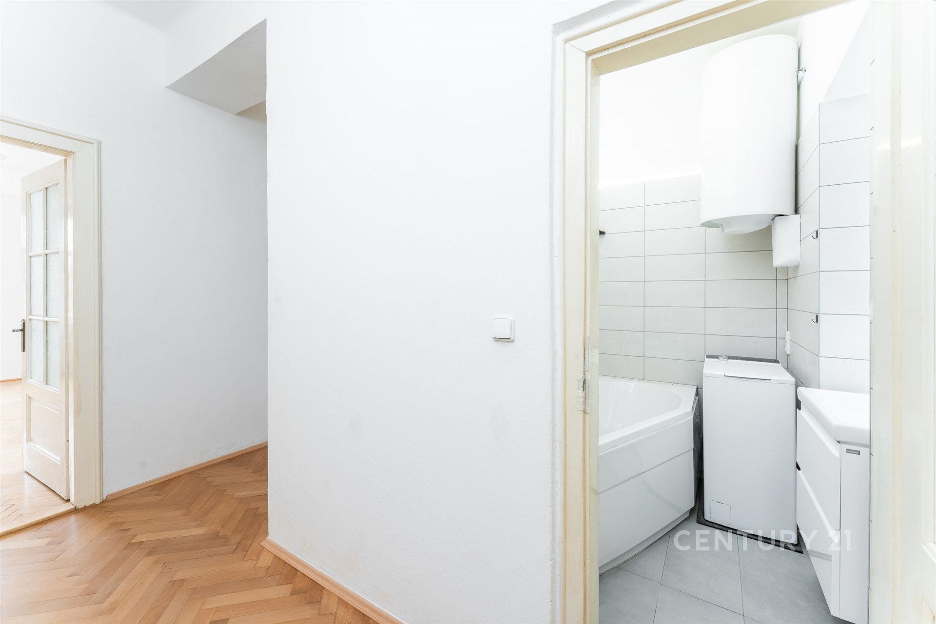 Samotný byt se nachází ve čtvrtém nadzemním podlaží a nabízí příjemnou kombinaci původních prvků a moderního komfortu. V obytných místnostech jsou na podlahách parkety, které dodávají interiéru teplo a eleganci. Okna s trojskly zajišťují klid i tepelný komfort, dřevěné interiérové dveře a obložky podtrhují autentickou atmosféru bytu. Praktickou součástí dispozice je spižírna u kuchyně a komora u jednoho z pokojů, takže o úložný prostor zde není nouze.