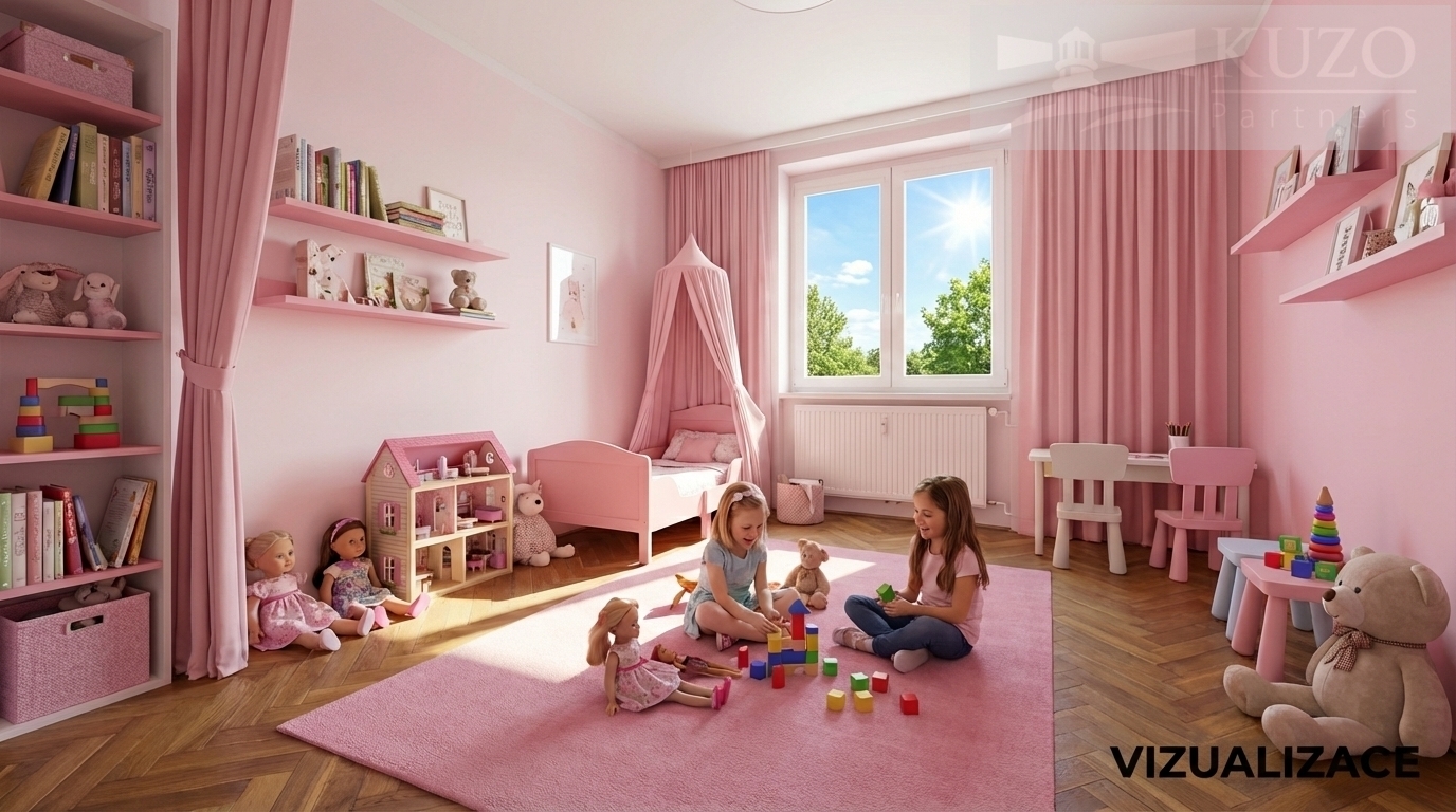 Byt má krásnou a praktickou neprůchozí dispozici pokojů, která zajišťuje soukromí.