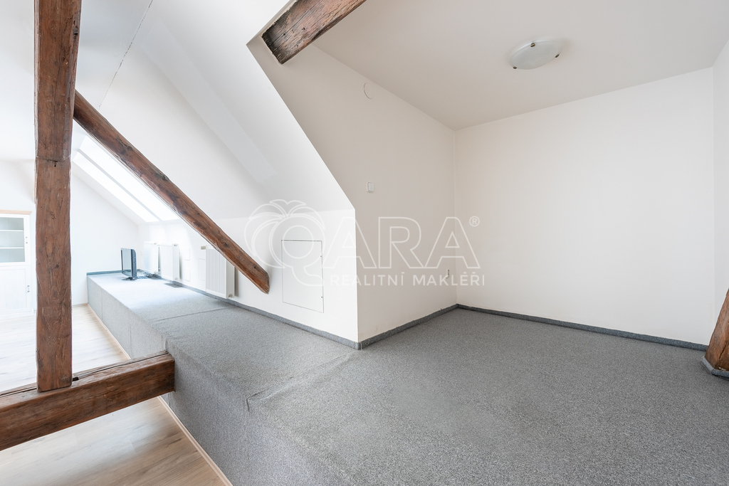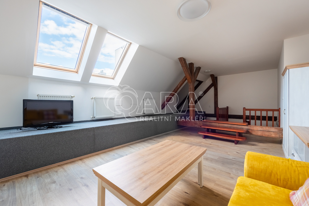 Dispozice: mezonetový byt, 1 samostatná otevřená ložnice, obývací pokoj s kuchyňským koutem, koupelna s vanou, toaleta zvlášť
