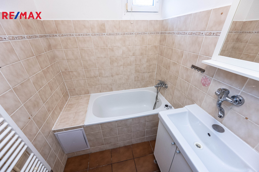 Nabízíme k prodeji družstevní byt, původně 1+1, přebudované příčkou na 2+kk s prosklenou lodžií (možnost přikoupení garáže, která není zahrnuta v ceně - není podmínkou!). Čistá obytná plocha bytu je 49,2 m2+lodžie 6m2+ sklep 1m2. Byt se nachází v přízemí nízkopodlažního, zrevitalizovaného panelového domu zasazeného mimo sídliště mezi rodinné domy. Orientace bytu je do zeleně za domem. Výhodou bytu je vlastní plynový kondenzační kotel Immerogas, kterým je řešeno vytápění bytu a ohřev vody. Byt je v obyvatelném stavu, určen k rekonstrukci dle vlastních představ - na podlahách lino, zděná koupelna s vanou, WC zvlášť. Kuchyňka s vlastním oknem je vybavena jednoduchou bílou linkou s el. varnou deskou, el. troubou a myčkou, v bytě úložná komora. K bytu možnost přikoupit uzamykatelnou garáž 16 m2 v osobním vlastnictví, hned vedle bytu. Bydlení v lukrativní, klidné lokalitě plné zeleně, s výbornou dostupností centra Prahy. Veškeré služby v místě. Byt je v družstevním vlastnictví (anuita je splacena), zatím bez možnosti převodu do osobního vlastnictví, hypotéka možná jen se zástavou jiné nemovitosti.