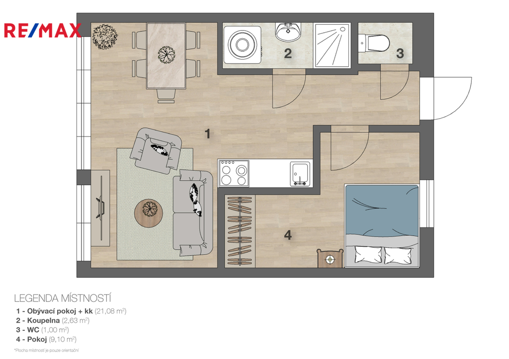 - Celková podlahová plocha: 37 m²