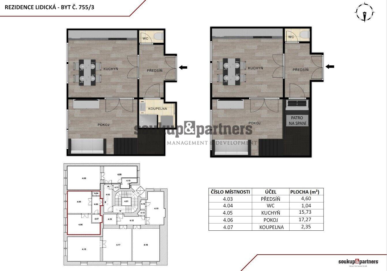 | Dispozice/podlahová plocha: | 2+kk/43 m² |