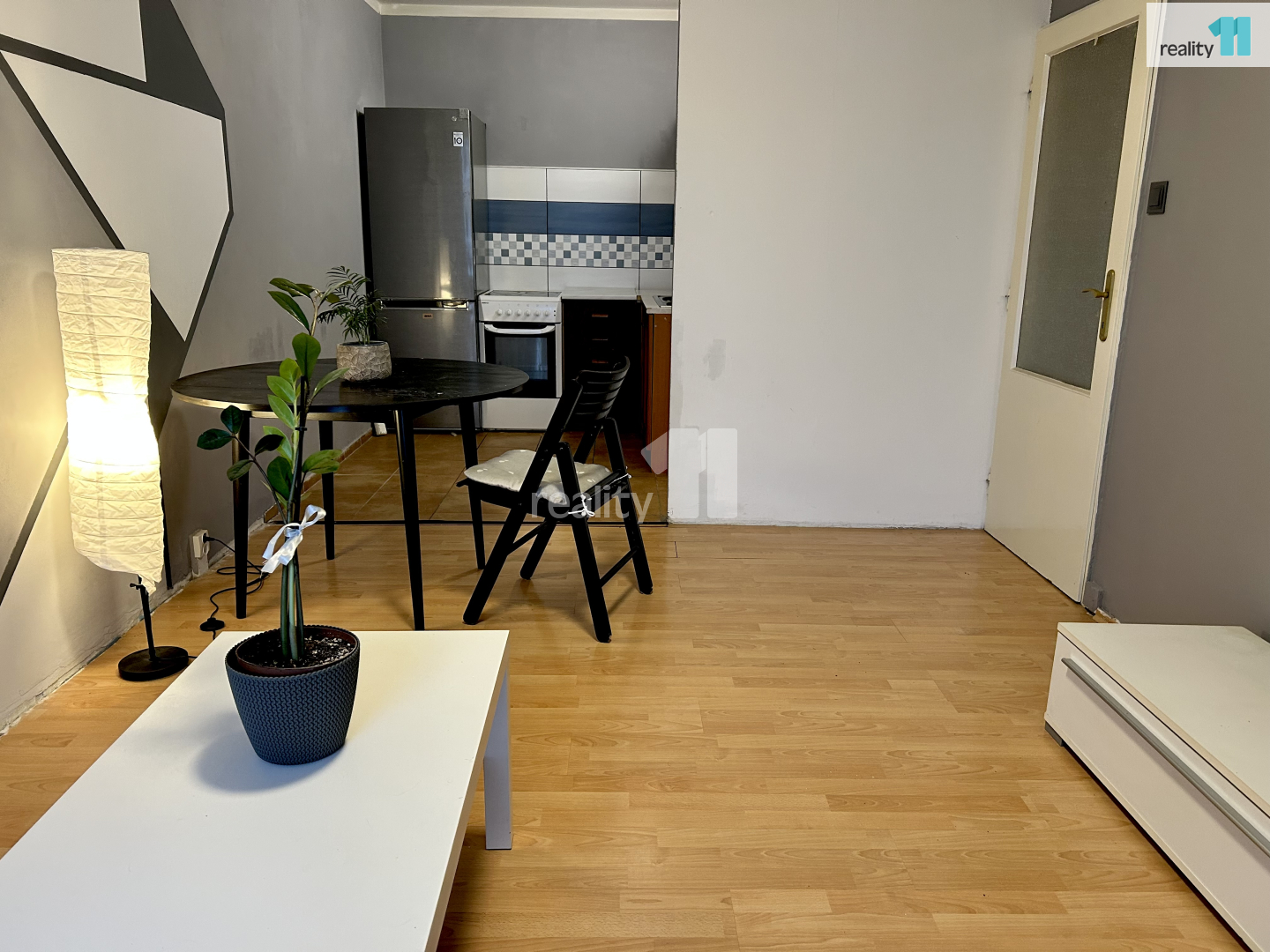 Byt je částečně vybaven lednicí a el. sporákem s troubou.