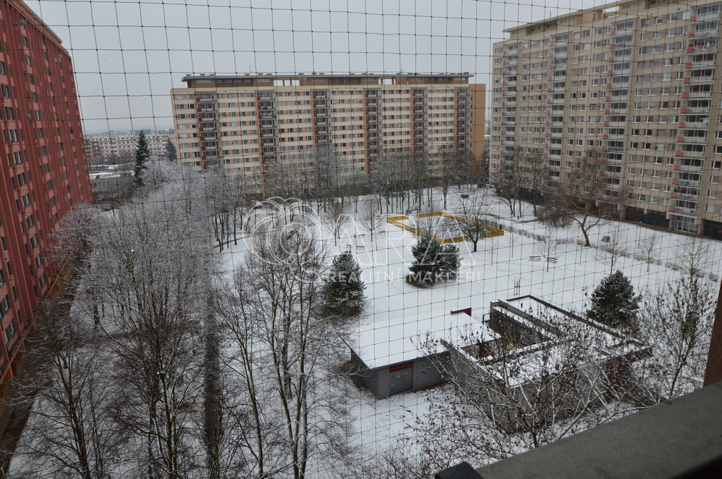 Z balkónu, opatřeného sítí proti holubům je výhled do vnitrobloku.
