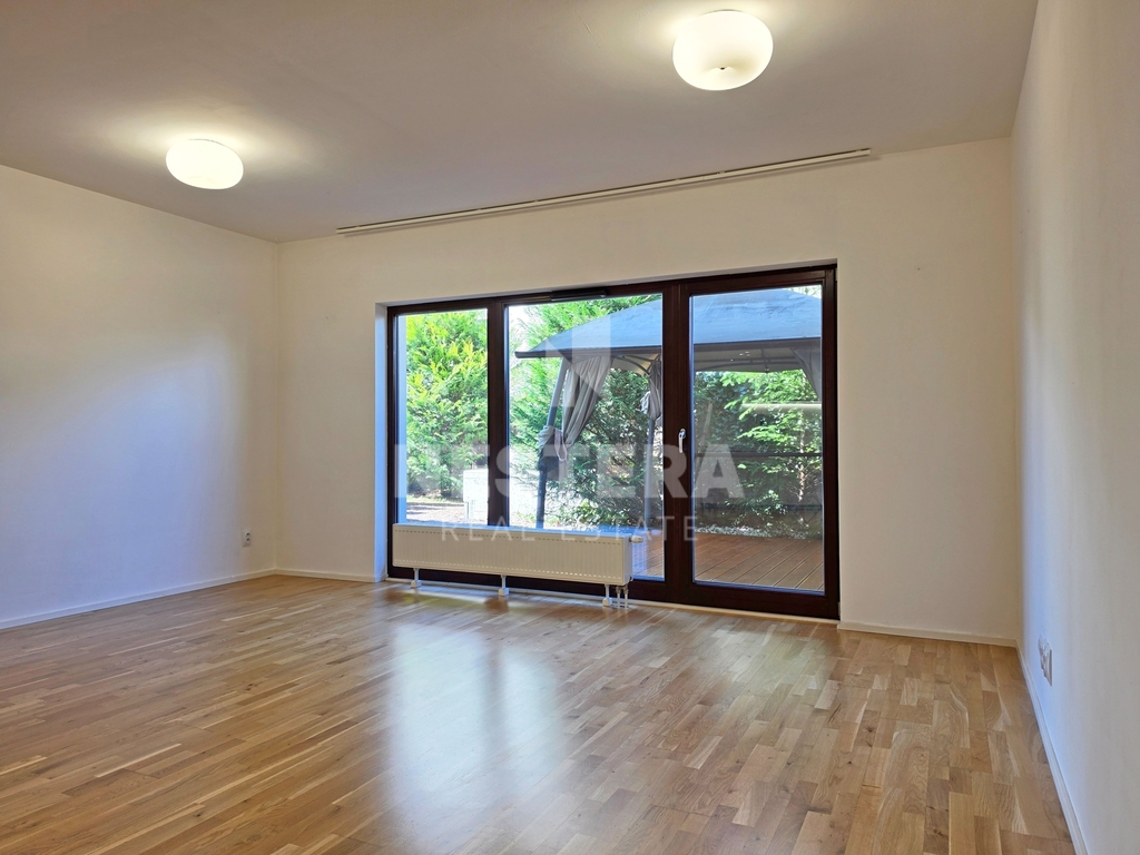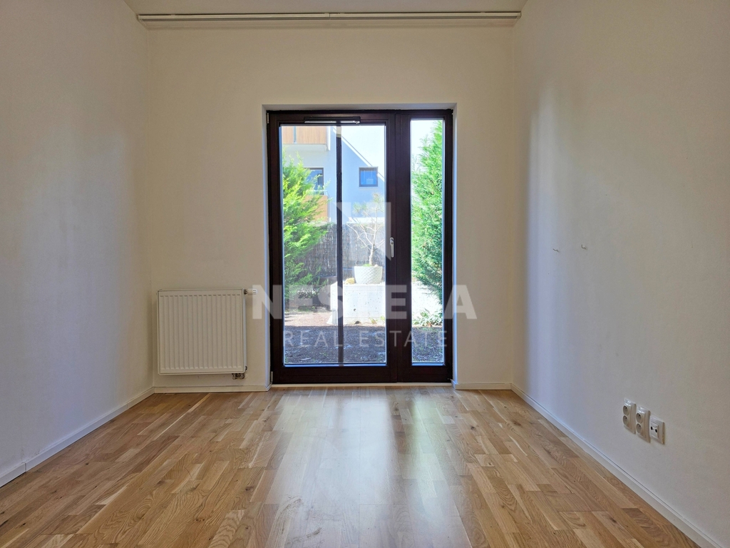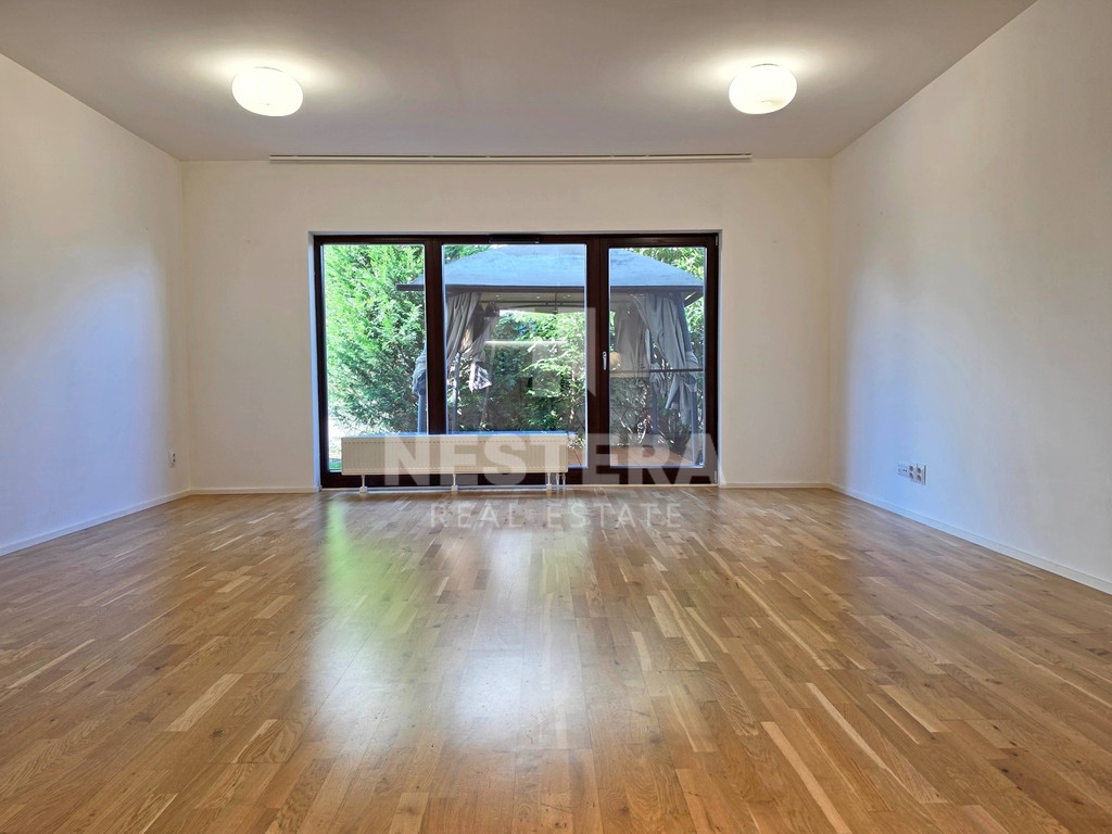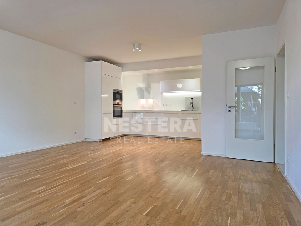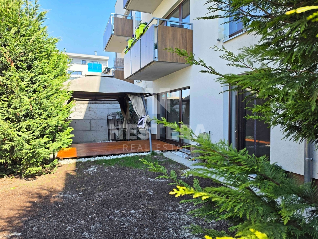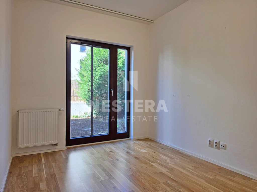 Byt se nachází v přízemí čtyřpodlažní novostavby s výtahem a má západní až severo-západní orientaci. Dispozičně je rozdělen na prostornou předsíň, koupelnu s vanou a přípravou na pračku, samostatnou toaletu, dva pokoje a veliký obývací prostor s kuchyňským koutem (36 m2). Z obýváku a obou pokojů je přístup na zahrádku, kde lze pohodlně relaxovat nebo nechat proběhnout domácí mazlíčky.