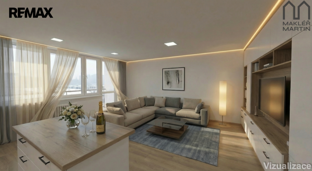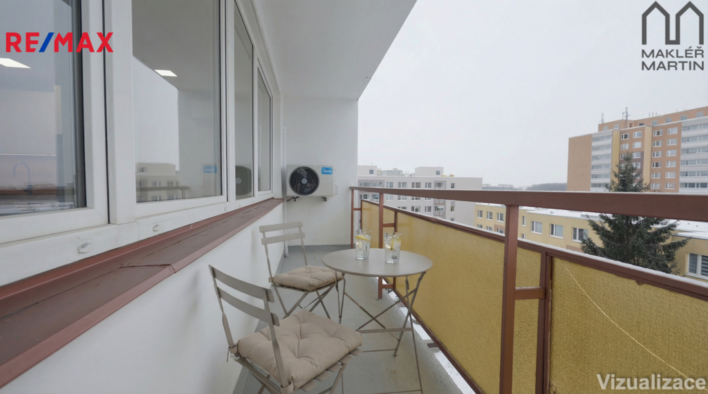 Dispozice bytu je velmi praktická a poskytuje komfortní bydlení pro rodinu i jednotlivce. Užitná plocha bytu činí 71 m² a zahrnuje prostorný obývací pokoj s kuchyňským koutem, dvě samostatné ložnice, koupelnu a oddělenou toaletu. Z obývacího pokoje je přímý vstup na balkon o velikosti 7 m², který nabízí příjemný prostor pro relaxaci a hezký výhled do okolí.