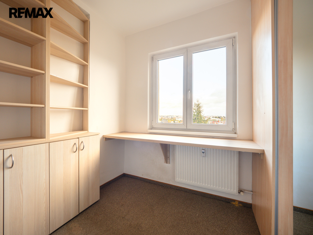Velikosti místností: obývací pokoj 20,9 m2, ložnice 21,95 m2, pracovna 7,8 m2. Současné měsíční poplatky cca 5700 Kč + elektřina.
