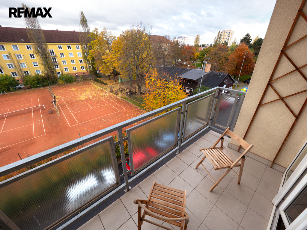 Byt je ve 4. nadzemním podlaží bez výtahu a je ideálním místem pro milovníky sportu, z velkého balkónu totiž máte výhled přímo na tenisové kurty. V blízkosti zastávka MHD, obchodní centrum, pošta, venkovní posilovna, dětská hřiště, parky, atd. Lokalita v klidné zástavbě nabízí velké množství zeleně. Stále se rozvíjející občanská vybavenost a umístění v obci dělá z bytu také dobrou investici do budoucna.