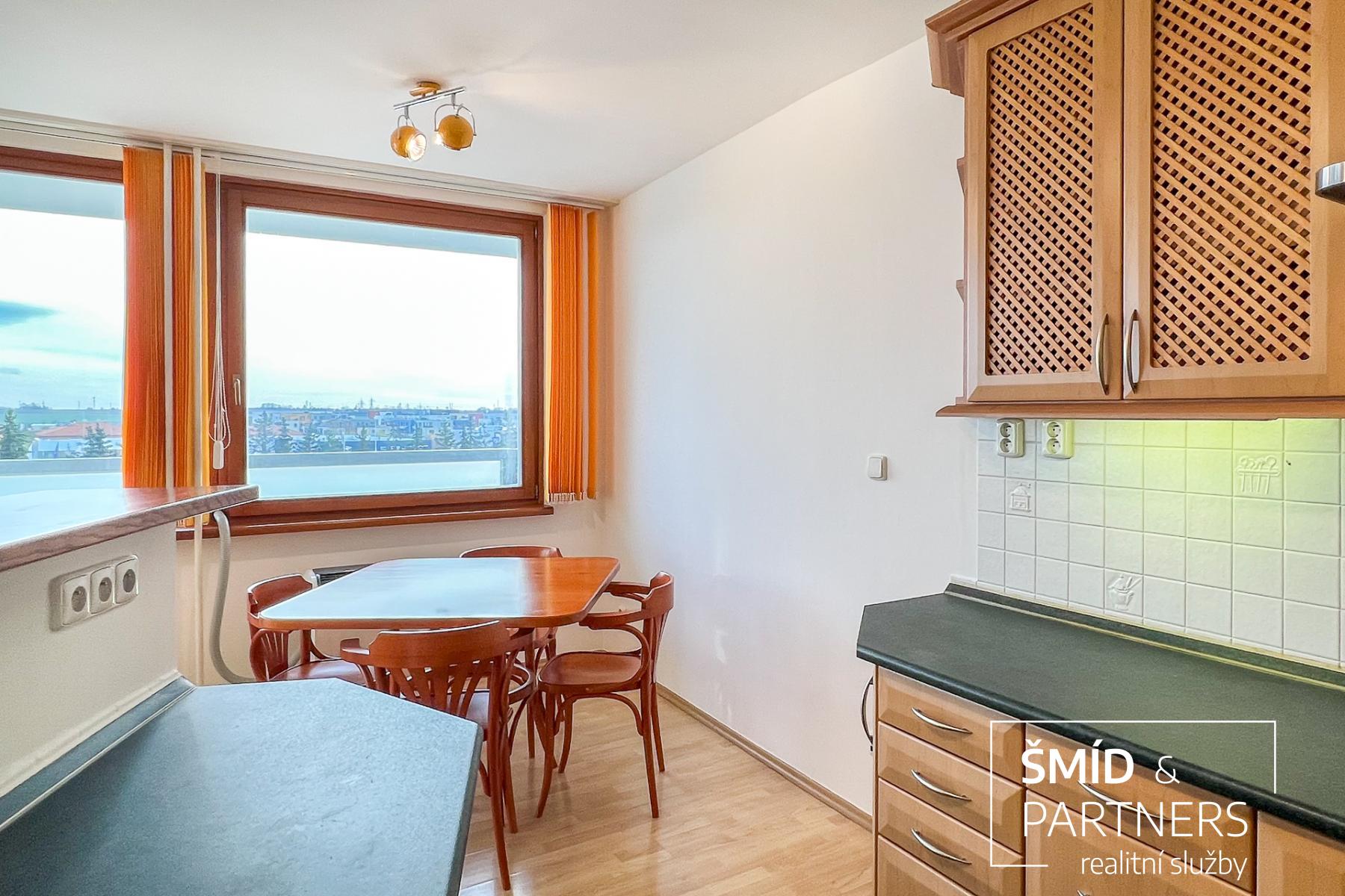 Panelový dům, kde se byt nachází, je zateplený a celkově dobře udržovaný. Výtah je samozřejmostí. Vytápění a ohřev vody je řešen dálkově a pro větší komfort v horkých letních dnech je v obývacím pokoji nainstalovaná velmi účinná klimatizační jednotka. Předpis měsíčních plateb pro dvě osoby činí 7.473.-Kč, z této částky připadá 2.610.-Kč na fond oprav. O každou další osobu se předpis měsíčních plateb zvyšuje o necelých 800.-Kč.
