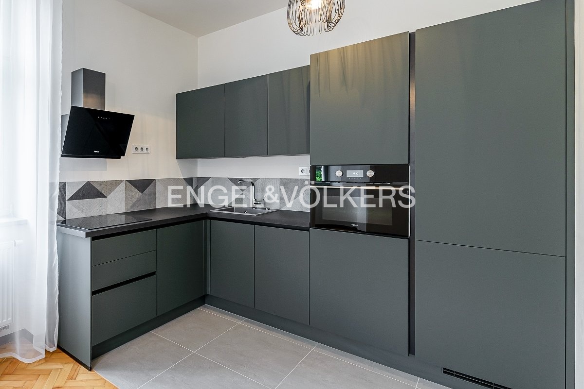 Nově zrekonstruovaný byt 3+kk s balkonem s výhledem do zeleného vnitrobloku se nachází ve 2. nadzemním podlaží.