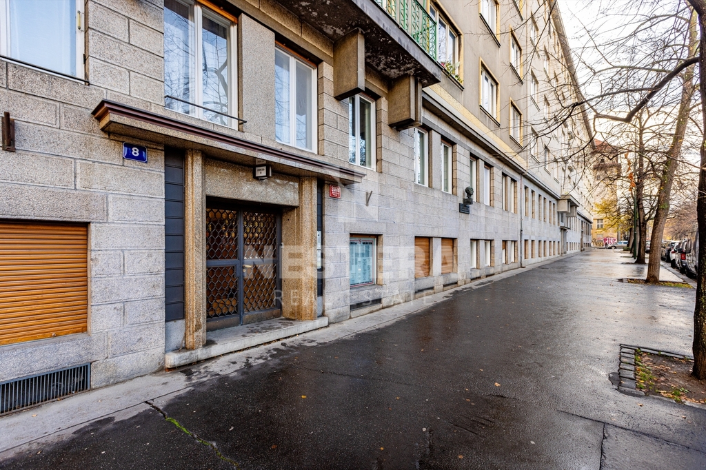 Cihlový dům, ve kterém se byt nachází je klidný a pečlivě udržovaný. Výhodou je i příjemná ulice plná zeleně a bezprostřední blízkost parku.
