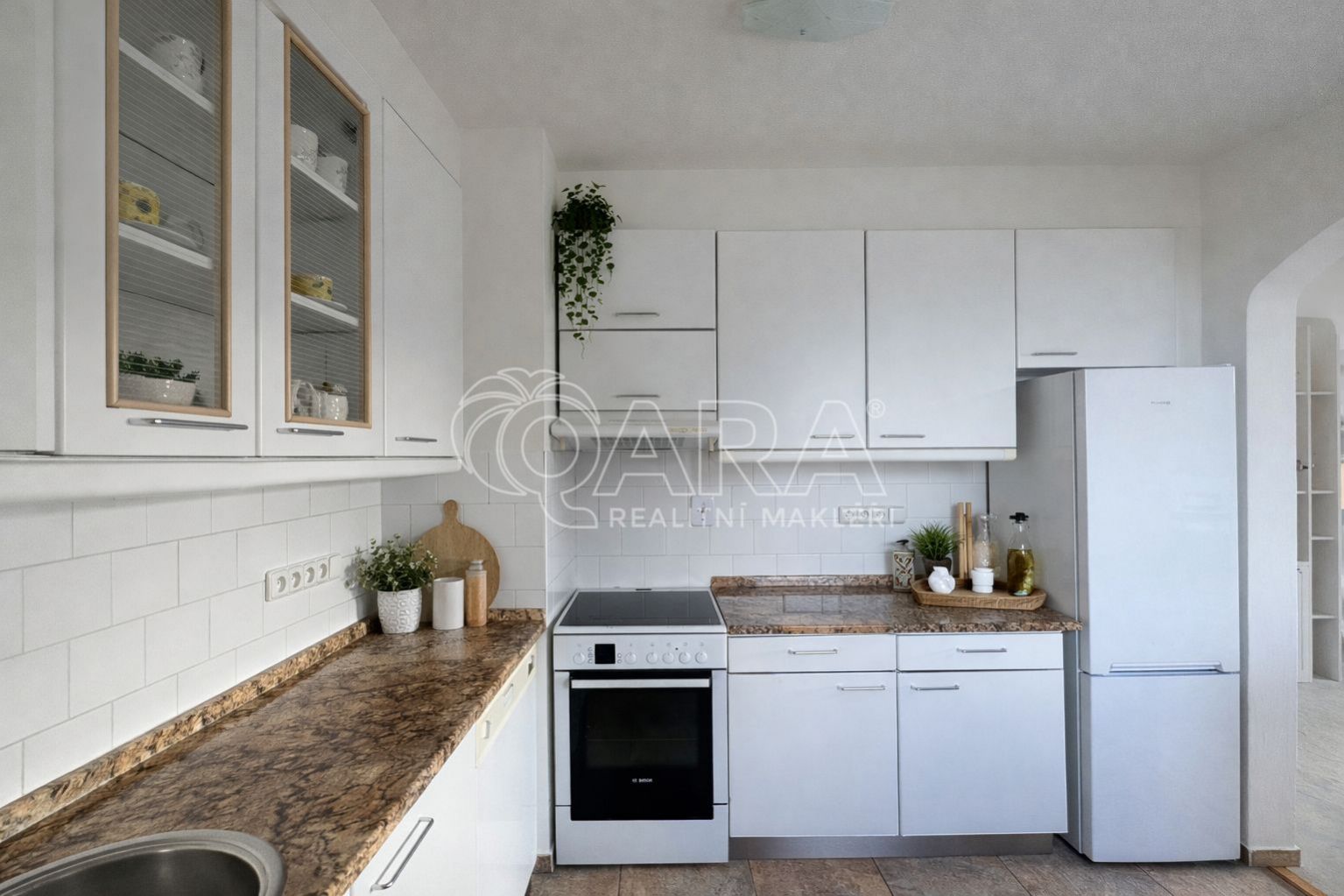 Jednotka se nabízí částečně vybavena, viz fotografie. Po domluvě s novým nájemníkem je však možné odstranění nábytku. K dispozici jsou tři samostatné, neprůchozí pokoje, vhodné jako ložnice, pracovna nebo dětský pokoj ve kterých jsou vestavěné skříně. Obývací pokoj se vstupem na zasklenou lodžii a kuchyní, která disponuje lednicí, myčkou, troubou, varnou deskou, digestoří a dostatkem úložného prostoru. Z bytu je nádherný výhled na rozlehlou přírodu. V chodbě jsou k dispozici prostorné, vestavěné skříně. Koupelna disponuje vanou, sprchovým koutem, umyvadlem, toaletou, otopným žebříkem a pračkou. Jedna další toaleta se nachází v chodbě samostatně.
