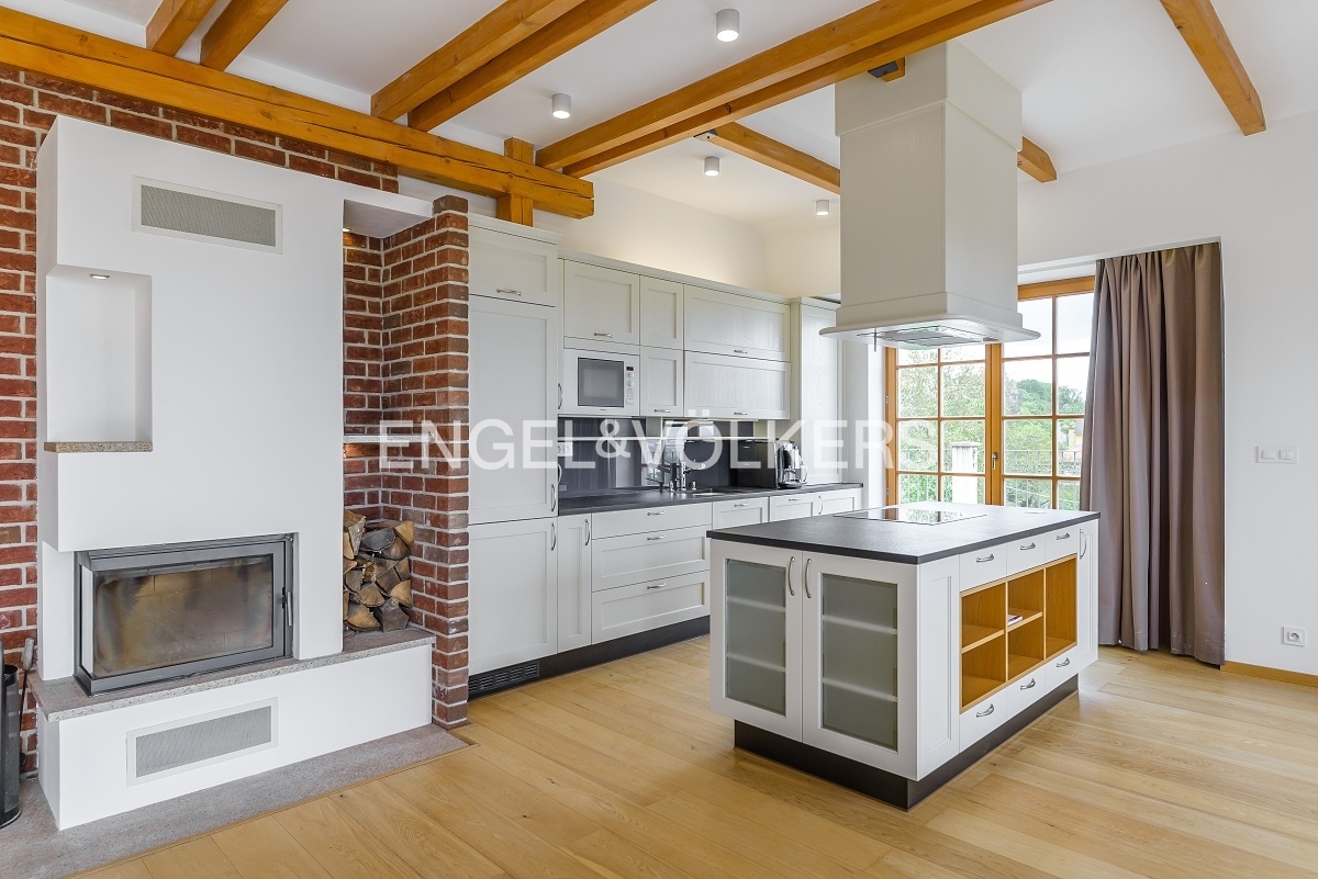 Kuchyňská linka je vybavená spotřebiči MIELE. V obývacím pokoji je krb na dřevo. Hlavní koupelna má walk-in sprchu a vanu, druhá koupelna sprchu. Přímo u kuchyně je prostorná terasa, z obývacího pokoje se dá francouzskými okny vyjít na balkón.