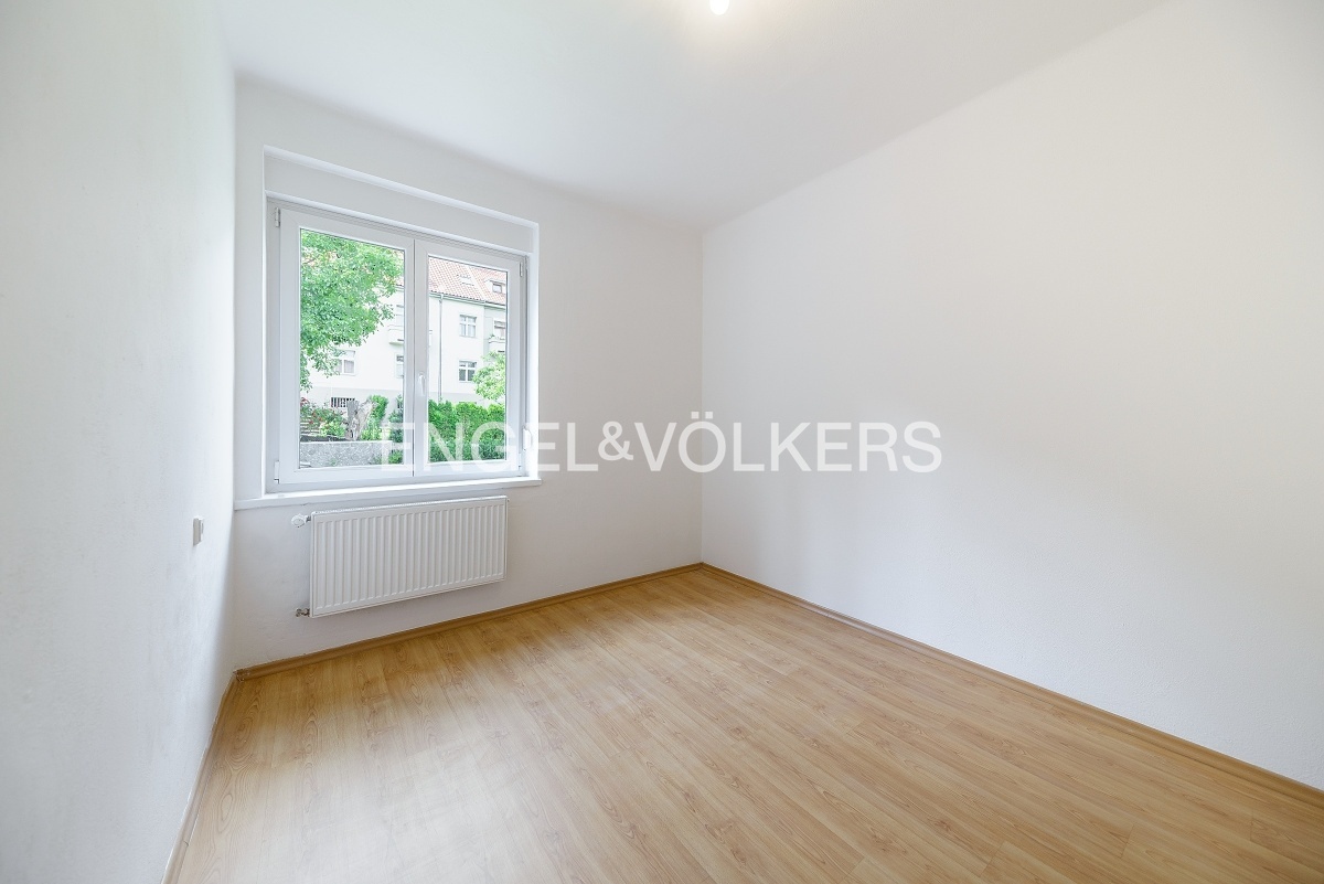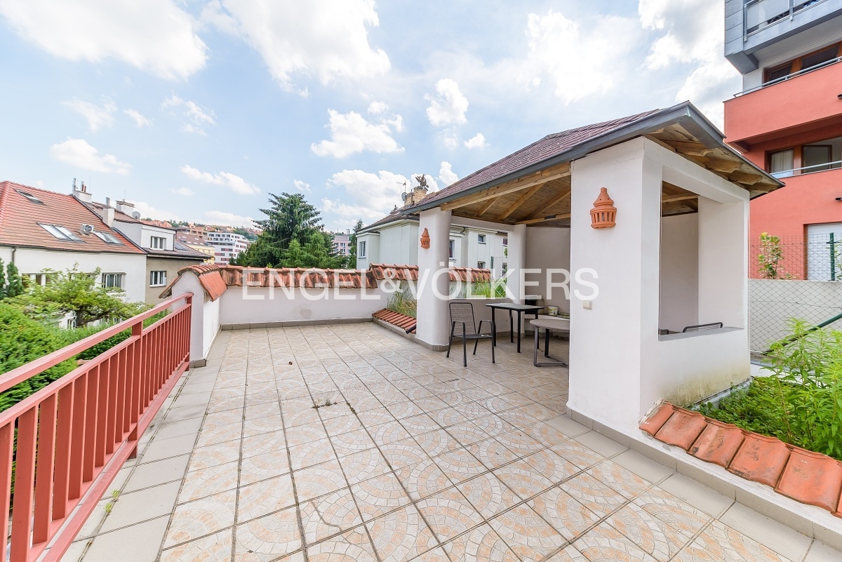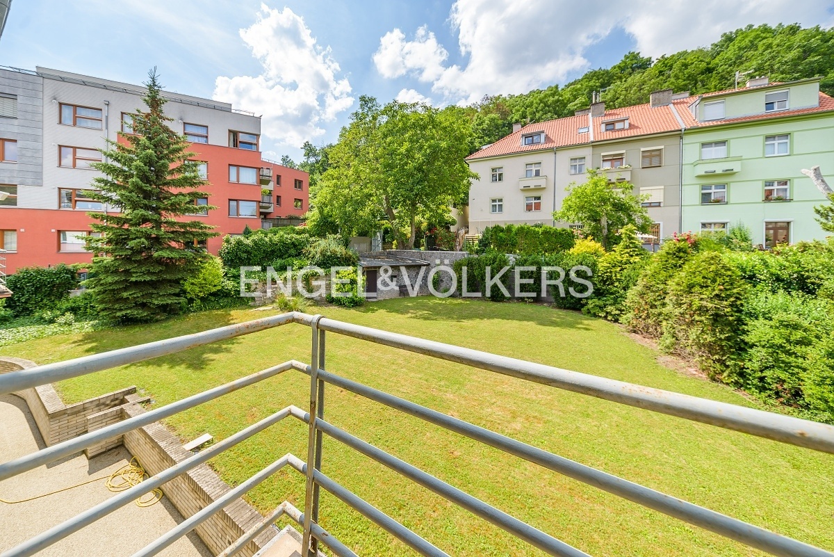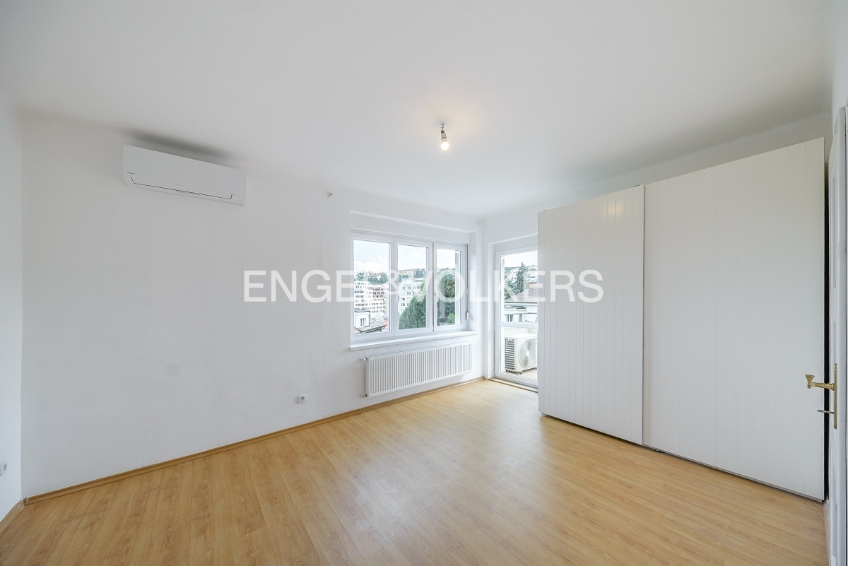 Prostorný byt ve vile v klidné čtvrti v blízkosti zeleně v Praze 5. Byt se skládá z prostorného obývacího pokoje, tří ložnic, plně vybavené kuchyně s jídelním prostorem, dvou koupelen (vana i sprchový kout) a dvou balkonů.