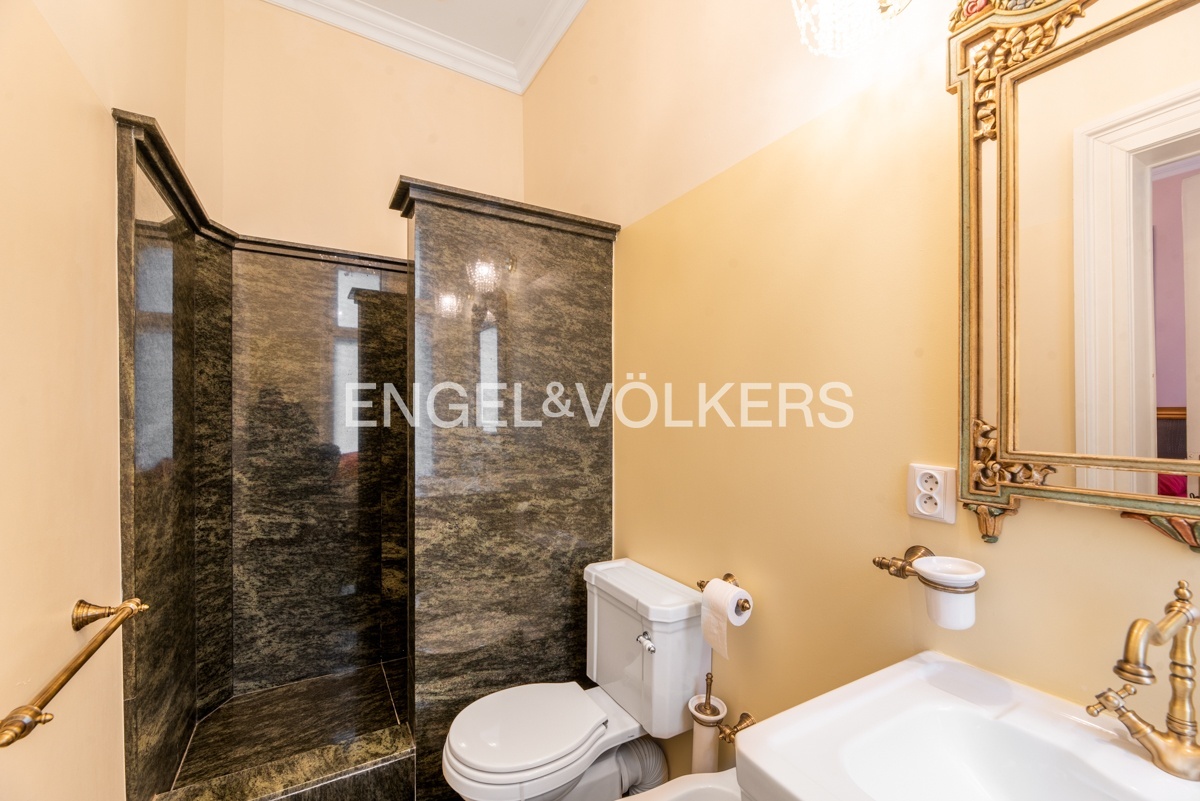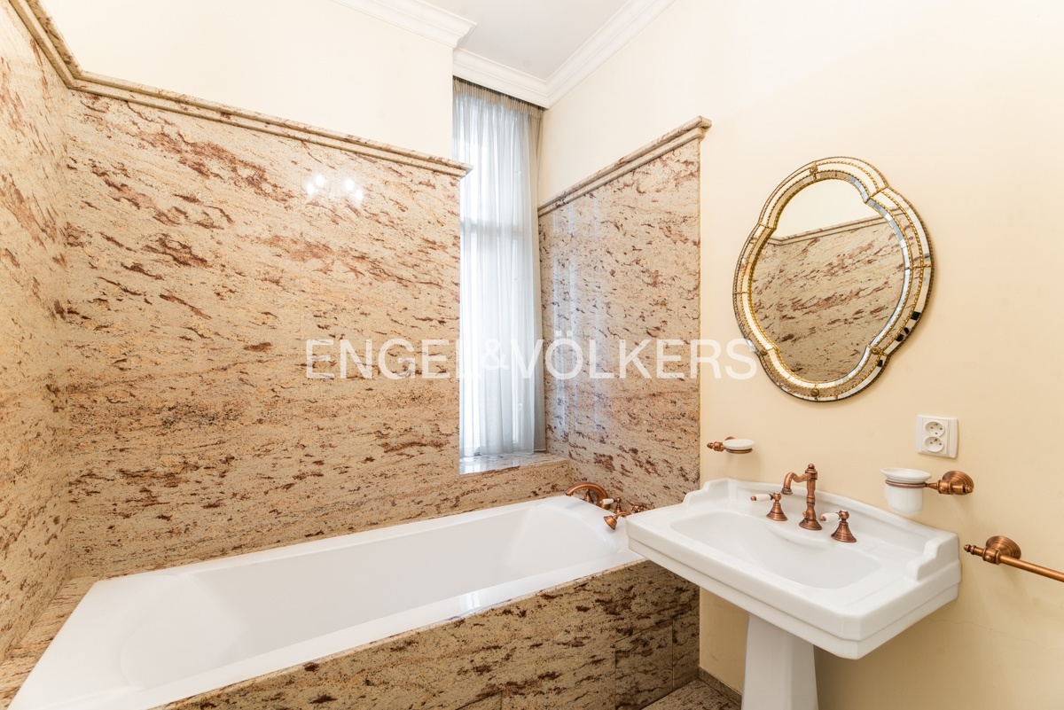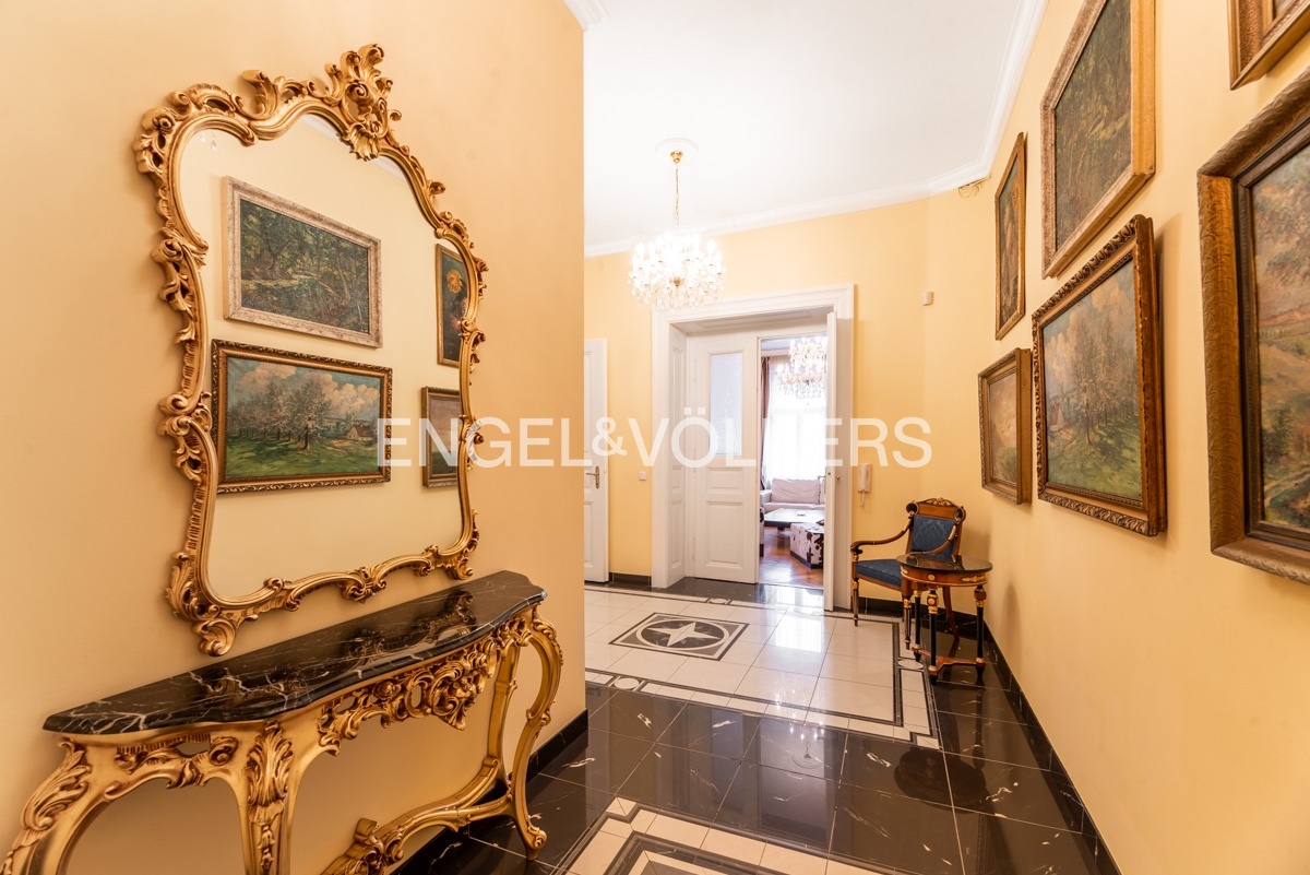 Byt se nachází ve čtvrtém nadzemní podlaží udržovaného činžovního domu s výtahem. Na první pohled zaujmou na podlahách krásné dřevěné parkety společně s italskou dlažbou, luxsní nábytek od italské značky Selva či obložení koupelen z mramoru a žuly. Srdcem celého bytu je prostorný obývací pokoj spojený s jídelní částí. Byt disponuje dvěma samostatně neprůchozími ložnicemi, z nichž jedna disponuje svojí koupelnou. Kuchyň je kompletně zařízená. Hlavní koupelna disponuje vanou, druhá pak sprchovým koutem.