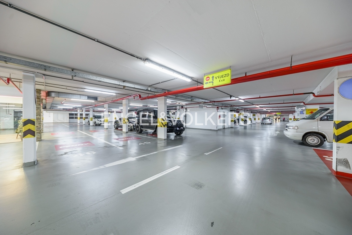 V budově je výtah, 24/7 recepce a možnost zajištění parkovacího místa v podzemních garážích za poplatek.