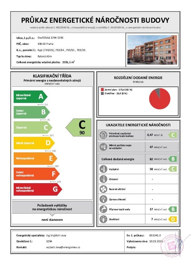 - Energetická náročnost budovy: C - Vyhovující