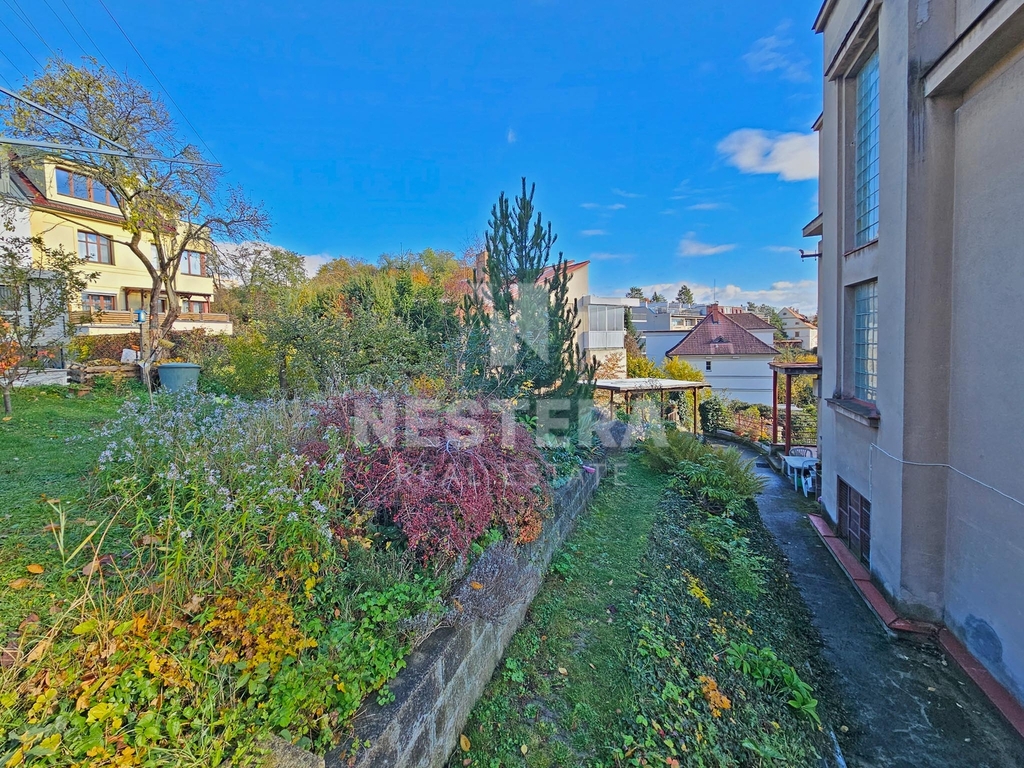 Kolem vily se rozprostírá terasovitá zahrada o výměře přes 1 100 m², která je skutečnou oázou klidu. Umožňuje vytvořit různá oddělená zákoutí pro různé účely – okrasné záhony, posezení či vybudování bazénu podle přání nového majitele.