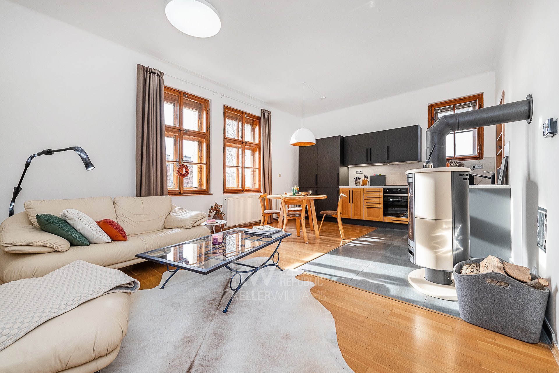 Citlivě zrekonstruovaný byt 2+kk v cihlovém domě – U Pernikářky, Smíchov