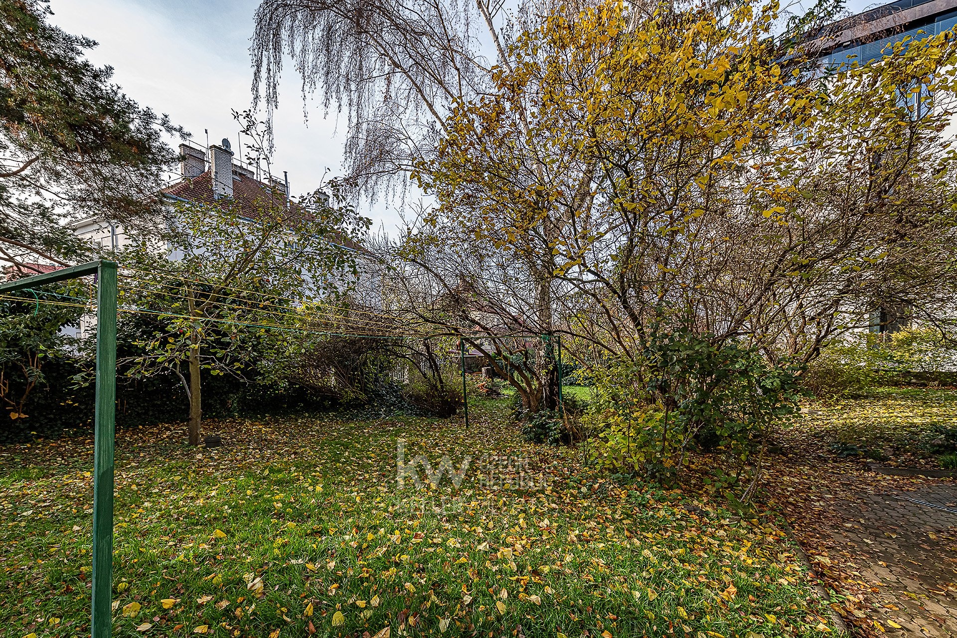 Příjemným bonusem je malá místnost s oknem, využitelná jako pracovna, šatna nebo komora. Díky posuvným dveřím a dennímu světlu působí vzdušněji než běžné úložné prostory a skvěle doplňuje dispozici bytu. Dům má před sebou udržovanou zahradu, kterou mohou obyvatelé využívat.