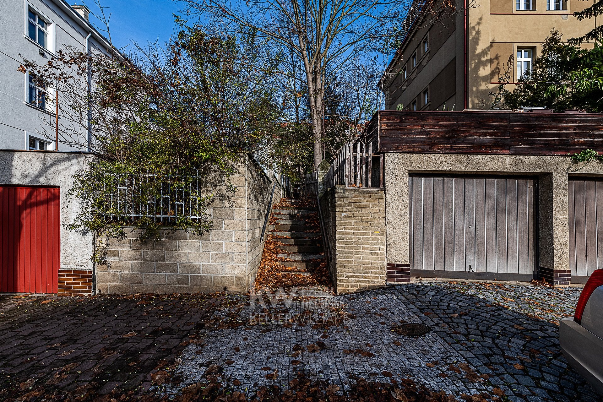 Lokalita je jednou z hlavních předností. Ulice U Pernikářky je slepá a neprůjezdná, takže působí téměř jako vilová zóna uprostřed zeleně. Parkování je možné v modrých zónách přímo u domu. K Andělu dojdete přibližně za 10–12 minut, tramvaje jsou dostupné na Švandově divadle a na Andělu, skvělé je i napojení na Strahovský tunel nebo Mrázovku. V okolí najdete kavárny, restaurace a kompletní služby, stejně jako parky Sacré Coeur a Petřín či sportovní stezky v okolí.
