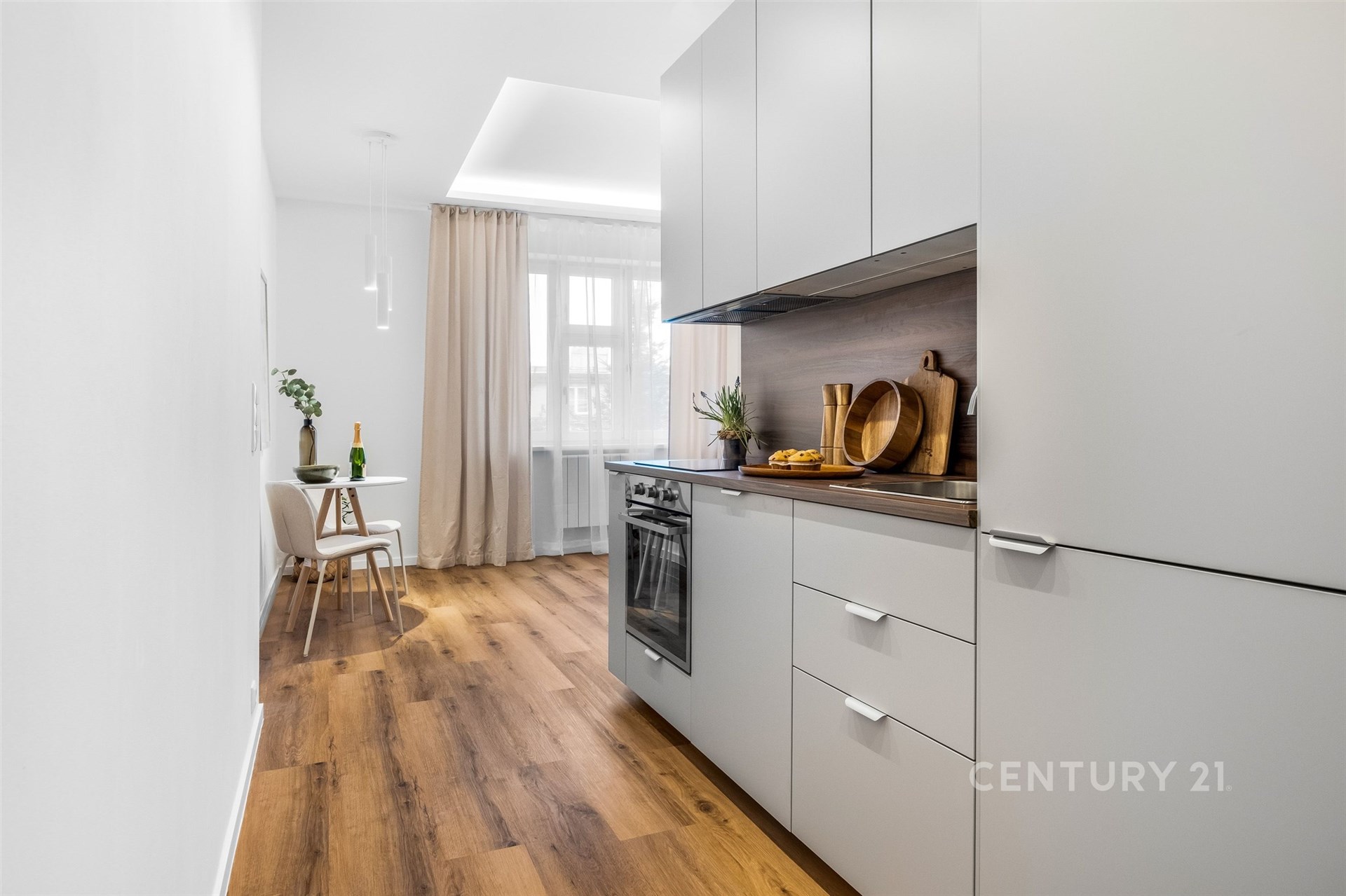 Interiér byl navržen s důrazem na čistý design, nadčasovou estetiku a maximální využití prostoru. Výsledkem je světlý, vzdušný a funkční byt, který působí jako zcela nové bydlení bez nutnosti jakýchkoliv dalších investic. Samozřejmostí jsou kvalitní materiály, designové podhledy s integrovaným osvětlením a precizně zpracovaná koupelna s důrazem na detail.
