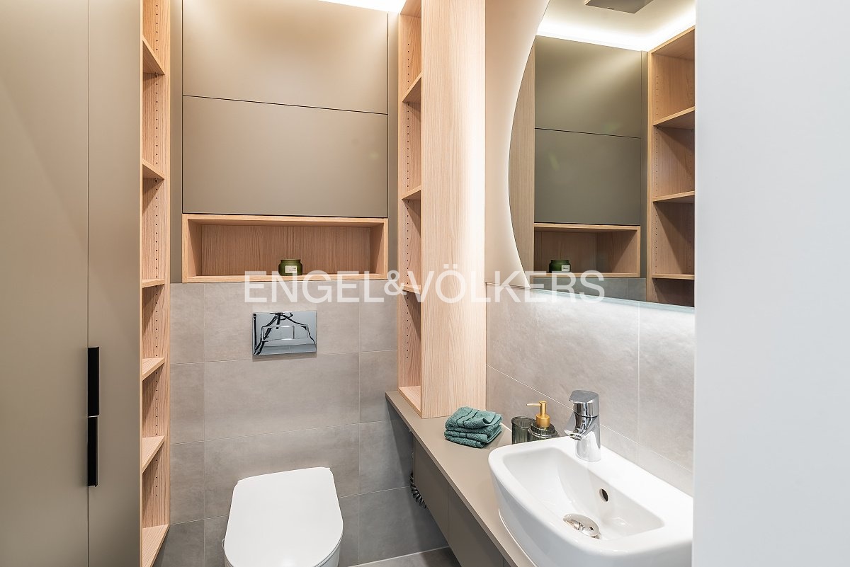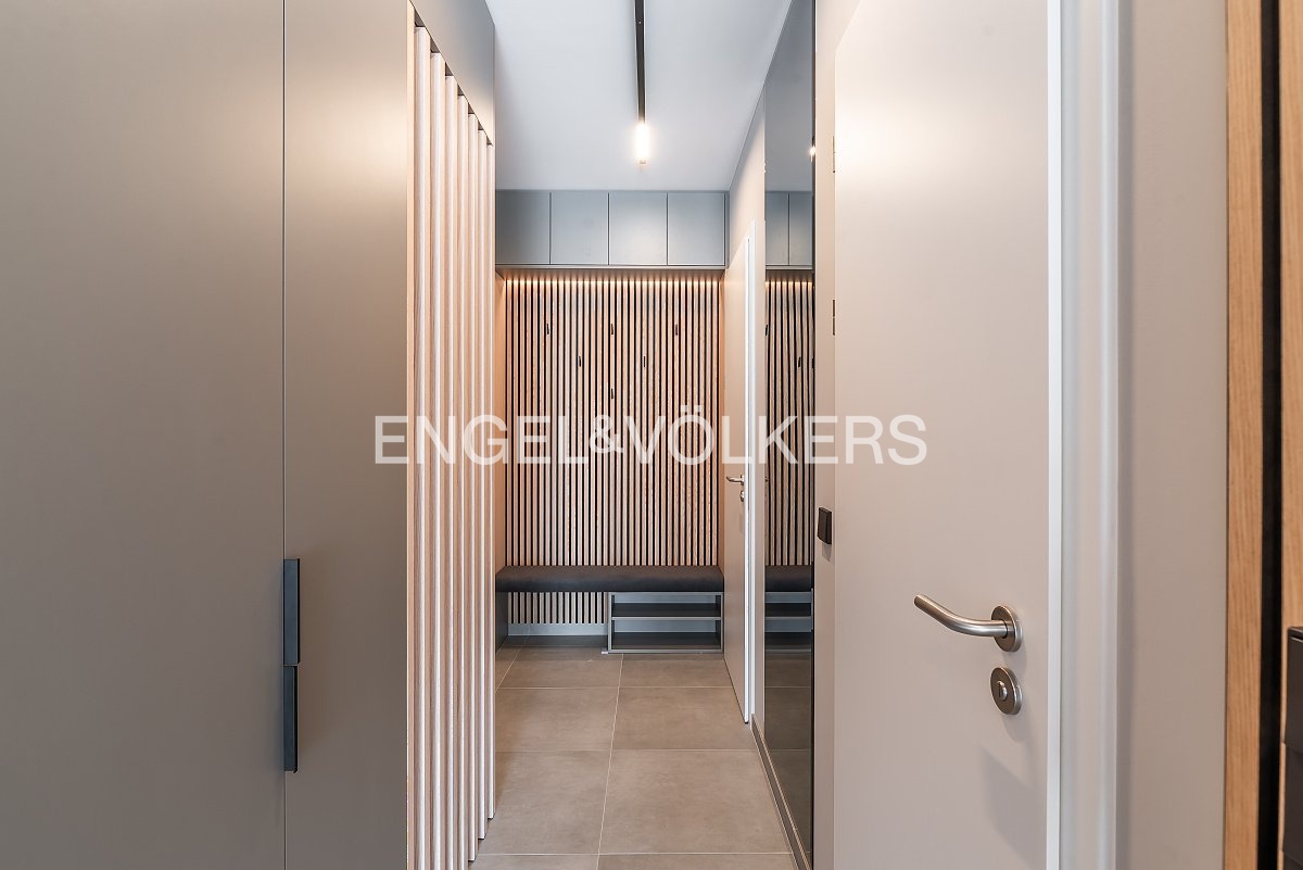 Vstupní chodba nabízí dostatek úložného prostoru a vede do moderní koupelny. Toaleta je pro maximální komfort řešena samostatně. K bytu náleží vlastní garážové stání a sklep. V rámci rezidence je k dispozici recepce, která zajišťuje vyšší komfort pro rezidenty.