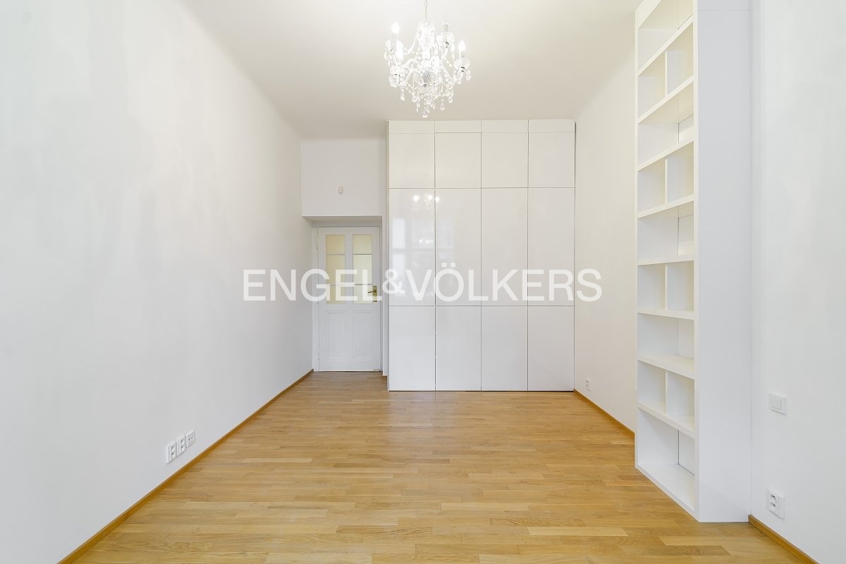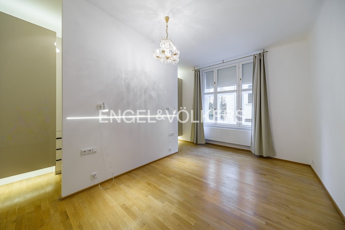 K dlouhodobému pronájmu nabízíme designový byt s praktickou dispozicí 3+kk na Josefově. Byt se nachází v prvním nadzemním podlaží historického činžovního domu s výtahem. Byt prošel nákladnou vkusnou rekonstrukcí, která kombinuje moderní a historické původní architektonické prvky. Praktická dispozice bytu nabízí velkorysou vstupní halu, obývací pokoj propojen s plně vybavenou kuchyní na míru s ostrůvkem a jídelní částí. Dále jsou součástí bytu dvě prostorné světlé ložnice. Součástí hlavní ložnice je šatna. Koupelna s vanou, sprchovým koutem a toaletou je přístupná z chodby, stejně tak i druhá samostatná toaleta. Byt nabízí obrovské množství vestavěných úložných prostor. Bonusem je i komora přístupná z kuchyně.