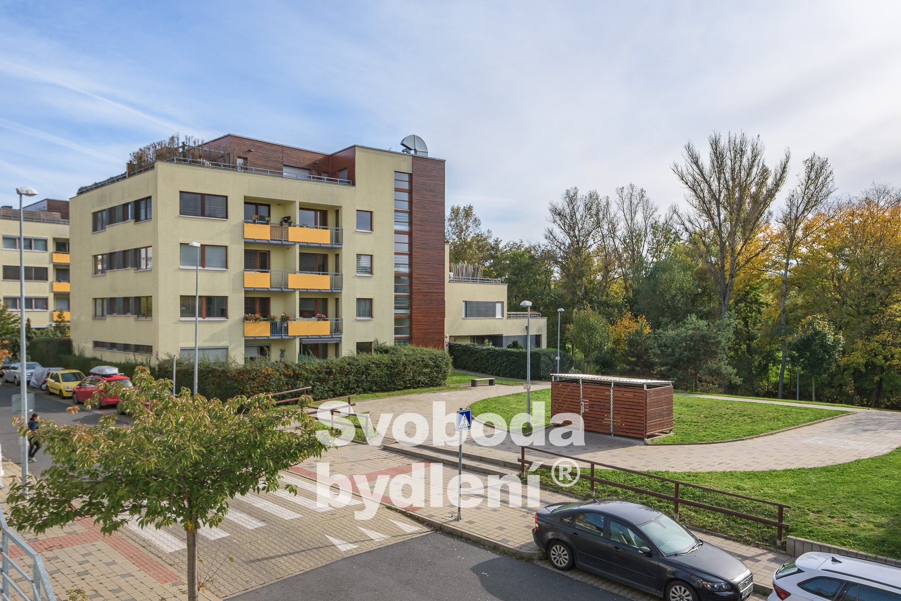 Západně orientovaný obývací pokoj s kuchyňským koutem i ložnice díky dostatečnému prosklení a vstupům na lodžii (cca 4,56m2) s pokračující zahrádkou (cca 37m2) navozuje vzdušný pocit otevřeného prostoru. Díky krajovému umístění bytu i zahrádky zde nalezneme větší soukromí. Moderní kuchyňská linka je vybavena el. vestavnou troubou, varnou deskou, myčkou a digestoří s odvětráním. Koupelna disponuje vanou, je zde prostor na pračku a sušičku. Množství úložných prostor poskytuje komora v bytě i zděná sklepní kóje v 1.PP.