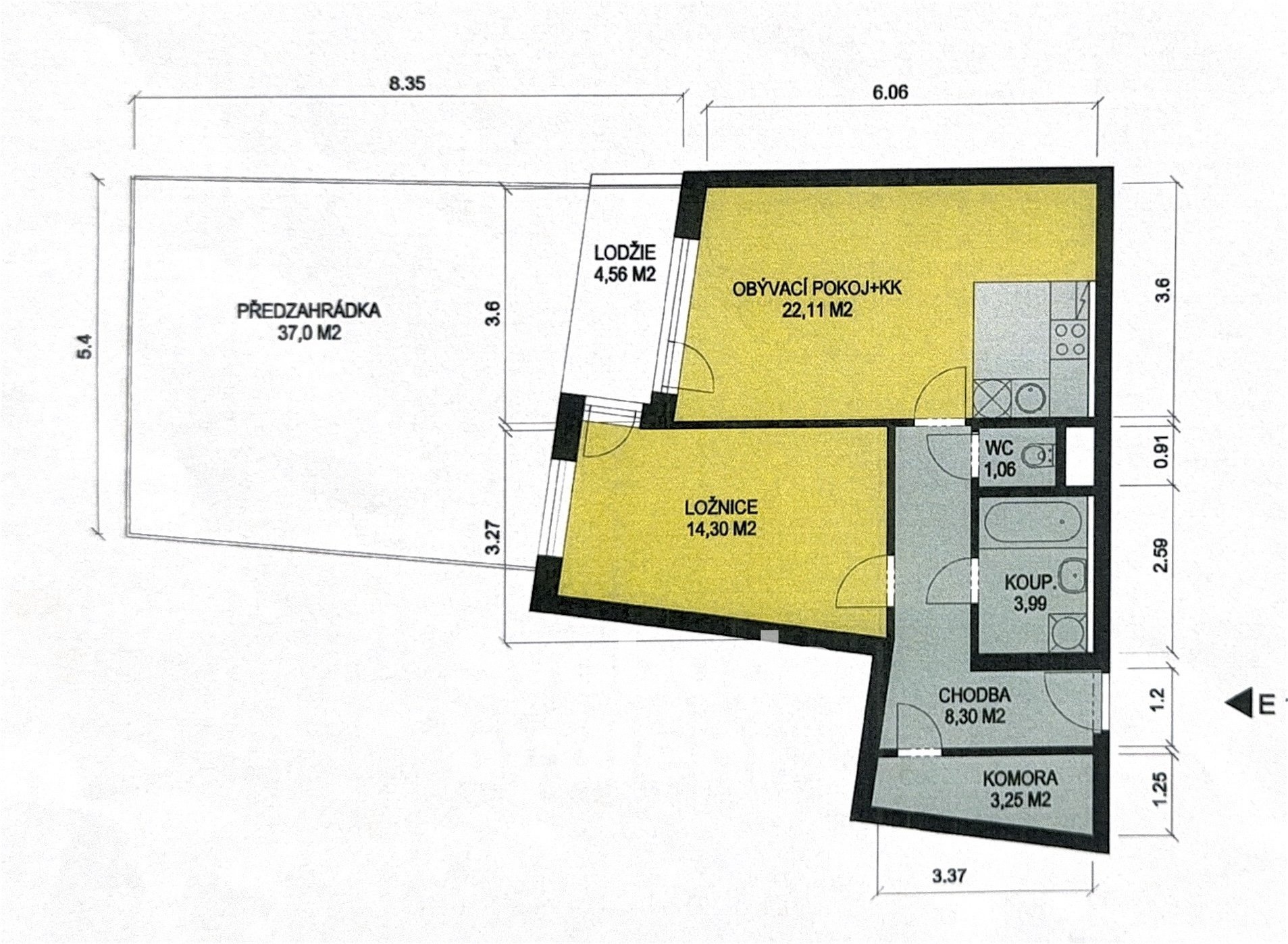 - Dispozice bytu: 2+kk