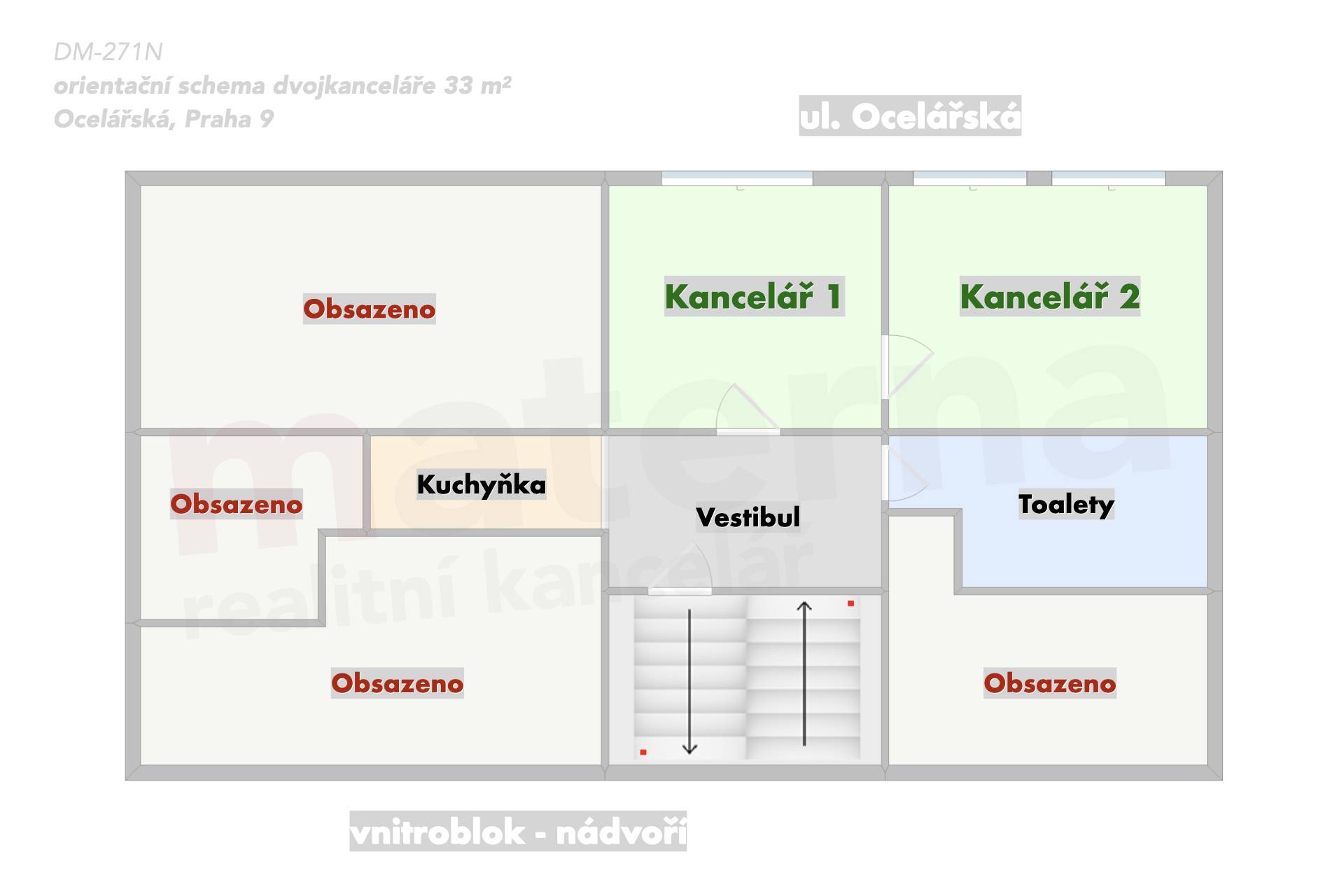 Dvojkancelář 33 m2 (13 + 20) - ul. Ocelářská, Praha 9 Libeň