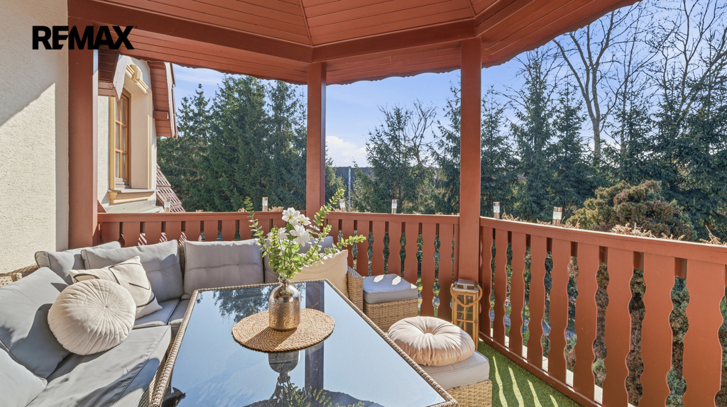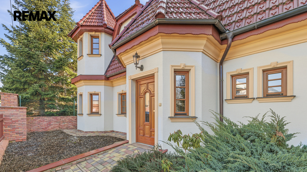 Dům zaujme svou výraznou architekturou s valbovou střechou doplněnou řadou věžiček a štítů, které mu dodávají jedinečný charakter. Interiér působí velmi světlým dojmem díky velkému množství oken v dřevěném provedení.