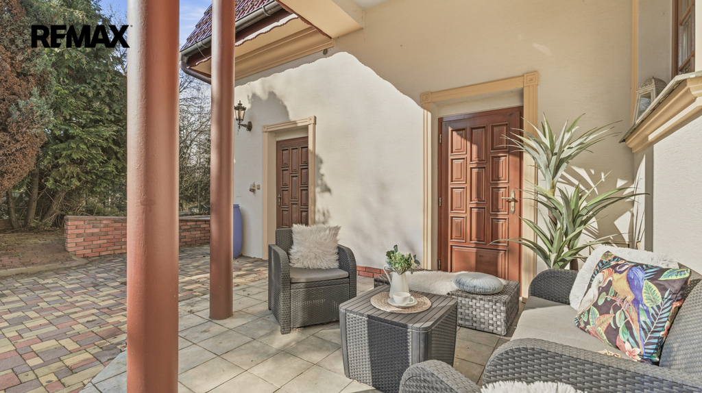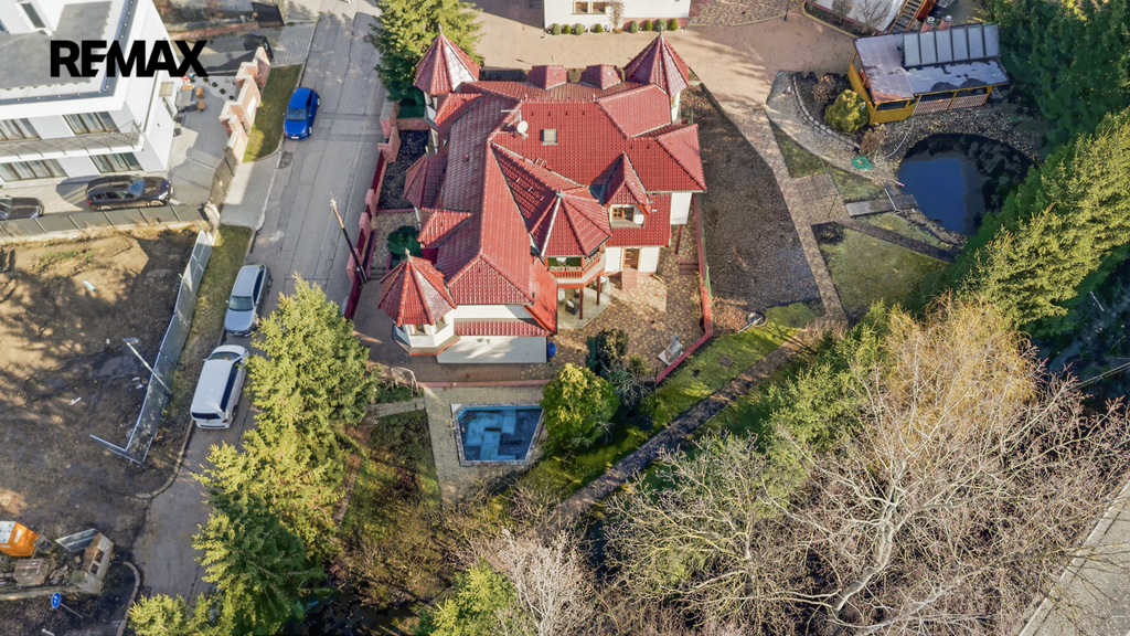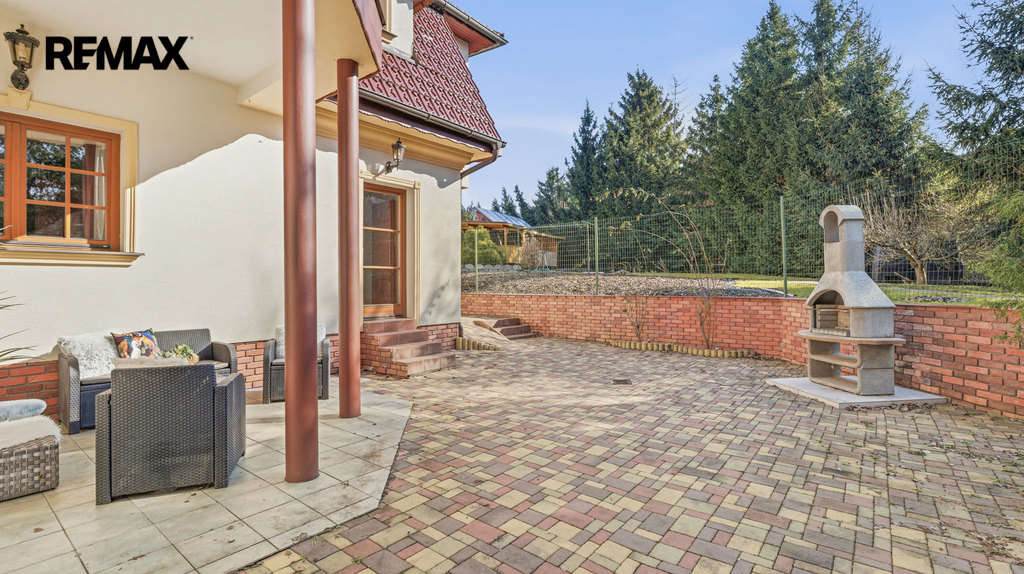 Součástí nemovitosti je garáž pro dvě auta, venkovní bazén 5x3 m a zabezpečovací systém s alarmem.