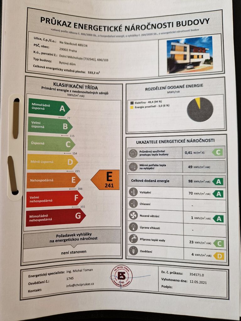- Energetický ukazatel podle vyhlášky: č. 264/2020 Sb.