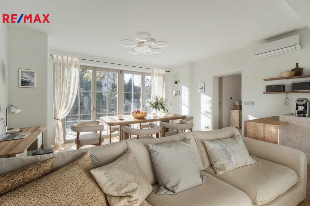Byt se nachází v přízemí kompletně zrekonstruované vily se třemi samostatnými jednotkami. Nabízí tak spojení komfortu moderního bydlení a soukromí, které běžně poskytuje rodinný dům.