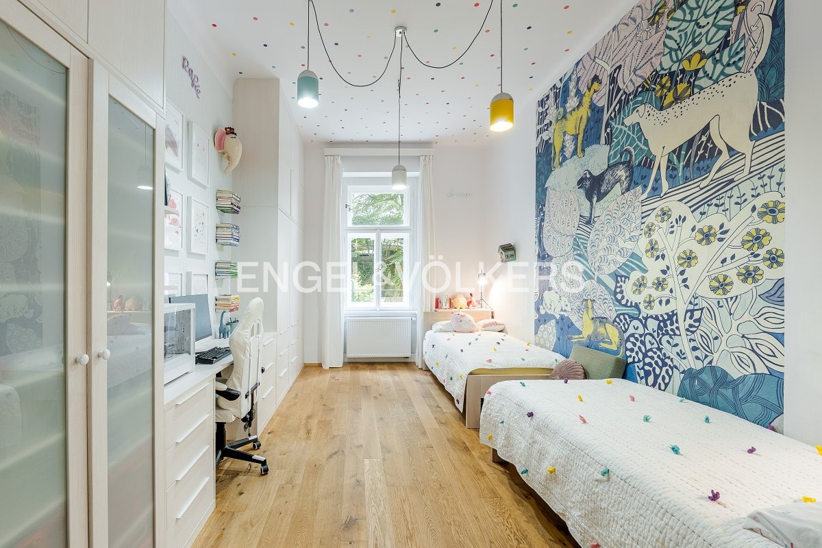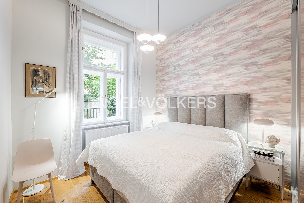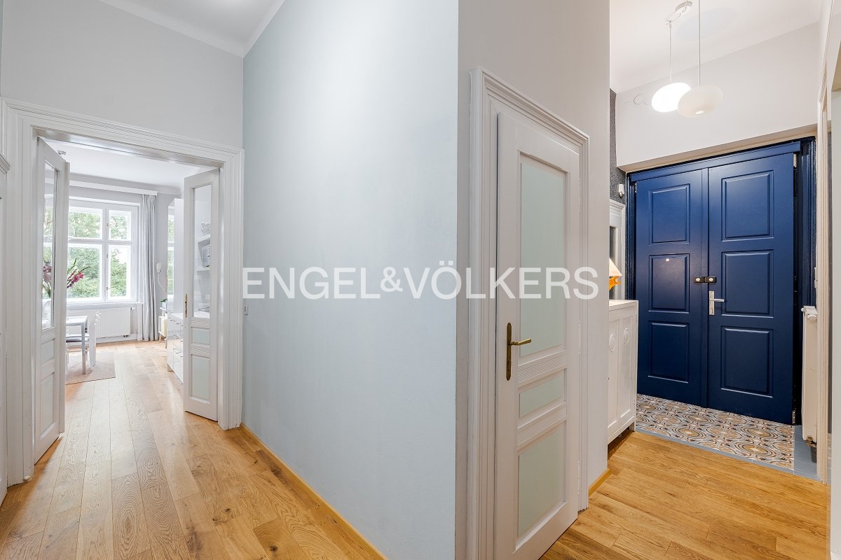 K pronájmu nabízíme elegantní byt s dispozicí 3+1, situovaný ve zvýšeném přízemí činžovního domu bez výtahu v jedné z nejkrásnějších ulic na Královských Vinohradech, přímo u parku Grébovka.