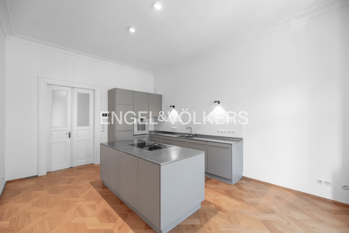 Byt prošel kompletní rekonstrukcí ve vysokém standardu a zaujme především důrazem na detail a použitím prémiových materiálů. V interiéru jsou masivní dubové podlahy Valen & Masar ve třech vzorech, koupelny a kuchyň jsou osazeny dlažbou Mutina. Radiátory značky Laurens and Tubes a porcelánové vypínače Katy Paty podtrhují celkový nadstandardní charakter bytu. Výška stropů 3,5 m dodává prostoru vzdušnost a jedinečnou eleganci.