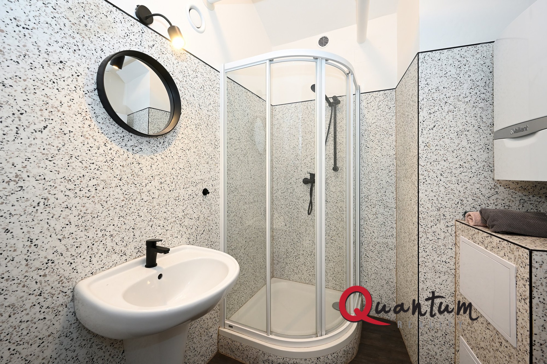 Vybavení dále zahrnuje rekuperační jednotku zajišťující nepřetržitou ventilaci a kondenzační plynový kotel pro vytápění a ohřev vody. Podlahy jsou vinylové s podlahovým vytápěním, okna dřevěná a zabezpečená mřížemi. Součástí prostoru je také menší komora na chodbě.