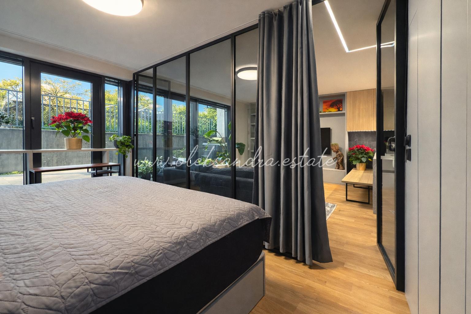 Byt je vybaven chytrou domácností s kompletním osvětlením Philips Hue, spotřebiči Bosch nejvyšší třídy, klimatizací s funkcí chlazení i vytápění, venkovními elektrickými roletami a vyhřívanou podlahou v koupelně. Každý detail zde má své místo a funkci.