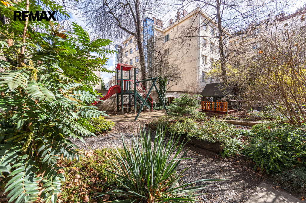 Skutečným klenotem je privátní zahrada s posezením a menším dětským hřištěm ve vnitrobloku, navržená ateliérem Ing. arch. Ferdinanda Lefflera. Ulice Kamenická nabízí to nejlepší z Letné – pár minut od Letenských sadů, v obklopení vyhlášených bister a obchodů, s centrem Prahy na dosah.