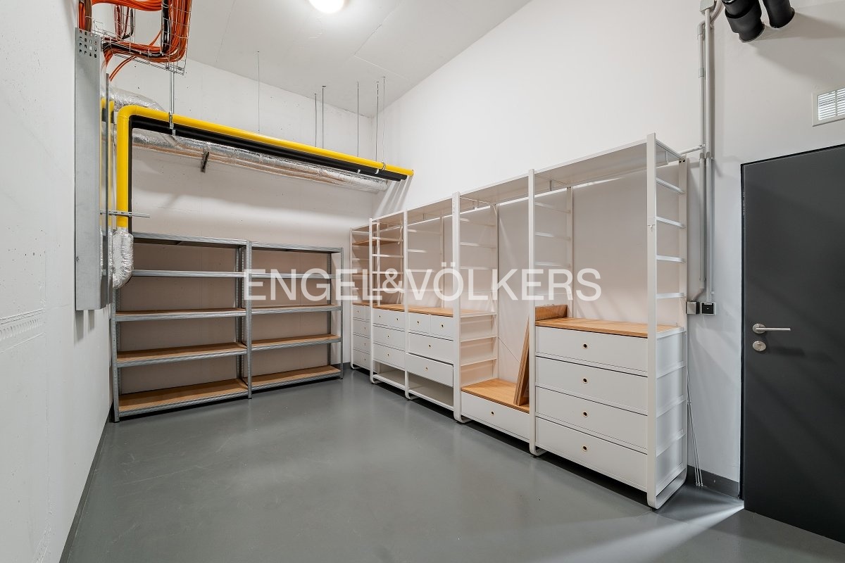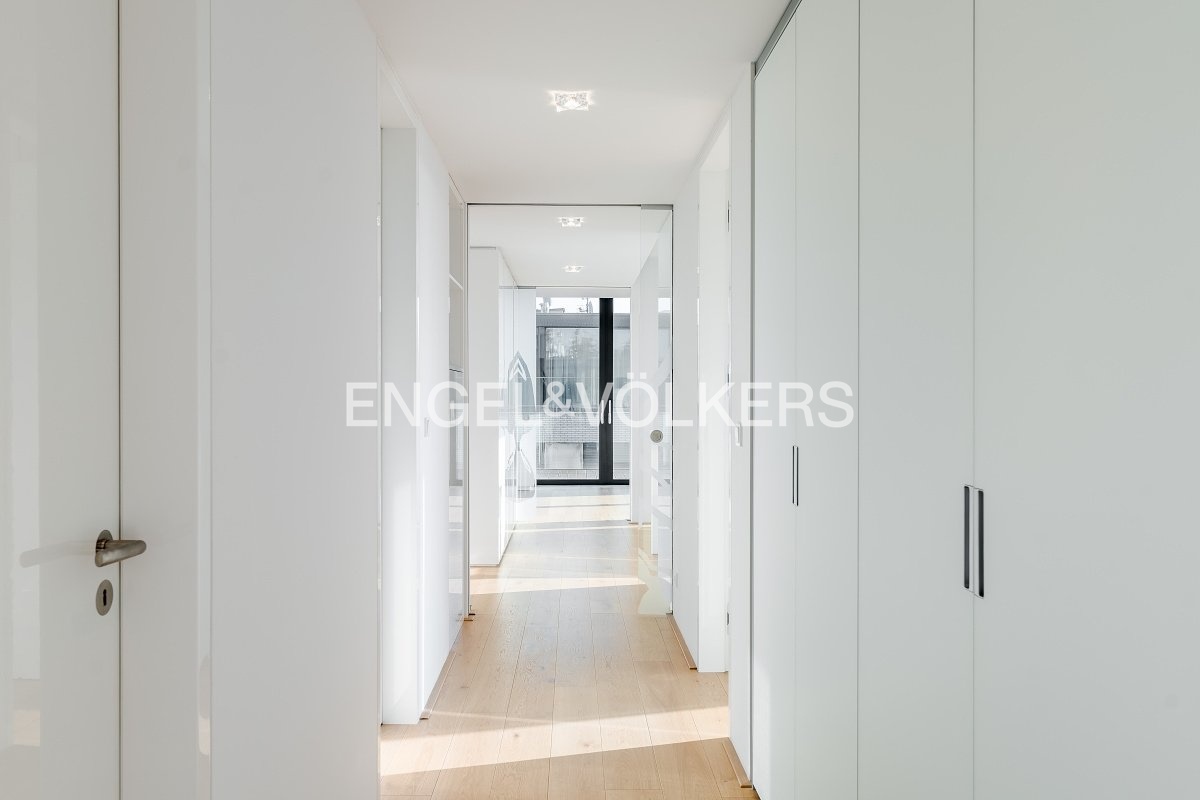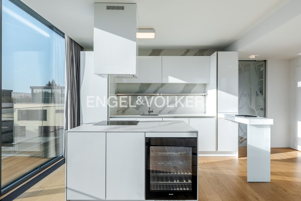 Byt je vybaven nadstandardními materiály a moderními technologiemi zajišťujícími maximální komfort – dubové podlahy, velkoformátová dlažba, terasa z tropického dřeva, bezpečnostní vstupní dveře, elektricky ovládané venkovní žaluzie, podlahové vytápění, stropní chlazení s kapilárním systémem a řízené větrání s rekuperací tepla. Součástí vybavení jsou také hliníková okna s izolačním trojsklem, pračka se sušičkou, kuchyňské spotřebiče značky Miele včetně vinotéky, alarm, sklepní kóje, výtah a kamerový systém. Dvě parkovací stání v podzemních garážích jsou zahrnuta v ceně nájmu.